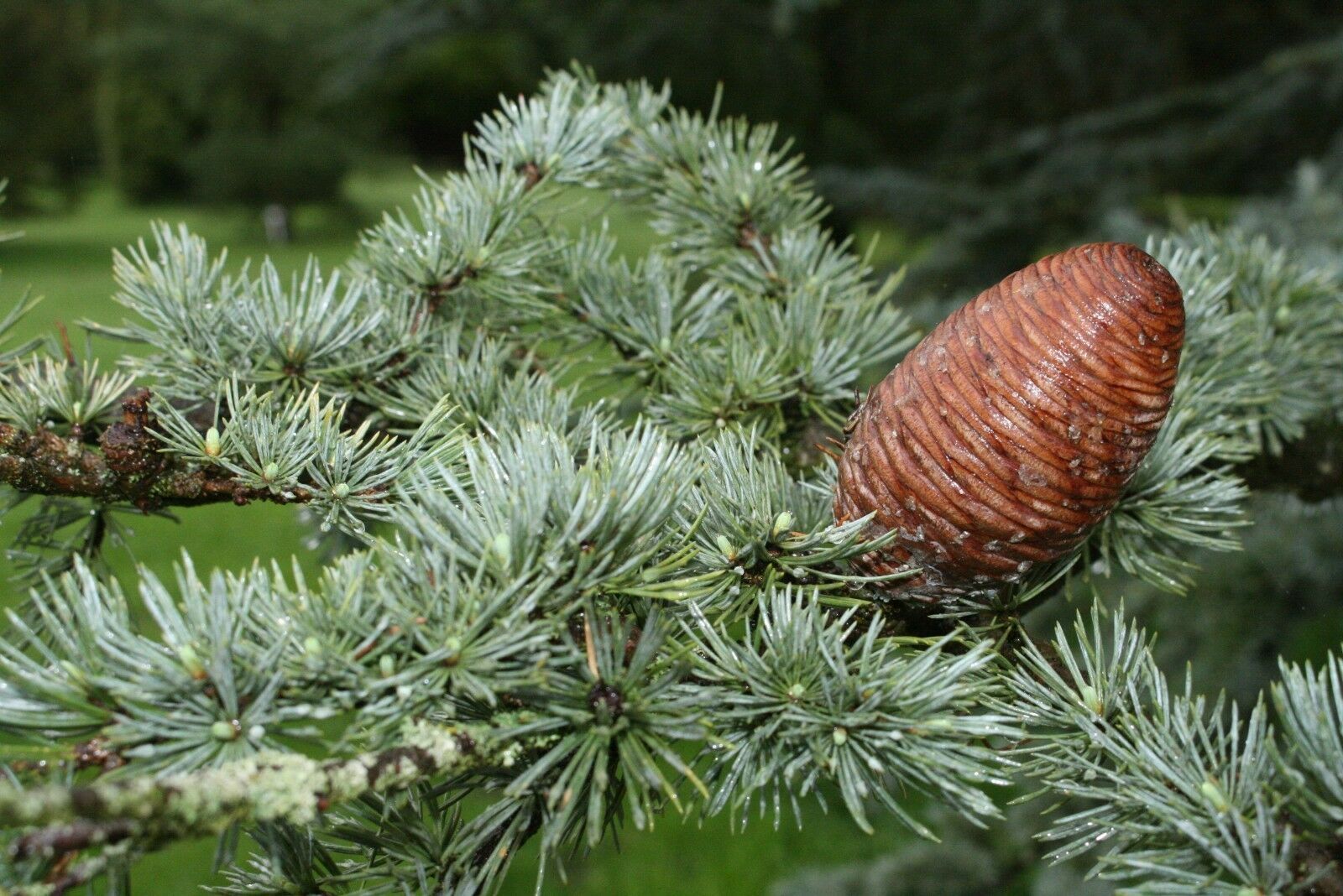 Blaue Atlas-Zeder - Cedrus atlantica 'Glauca' Herkunft Heimat: Diese Zeder ist in Marokko, Algerien und Nordafrika beheimatet. Familie: Kieferngewächse, Pinaceae Wuchsform: zunächst kegelförmig, später ausladende und ausdrucksstarke Kronenform Wuchshöhe Wuchsbreite: Sie wächst rasch zum großen Baum