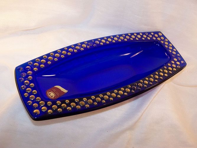 Blaue Walther Glas Schale mit Golddekor * * *