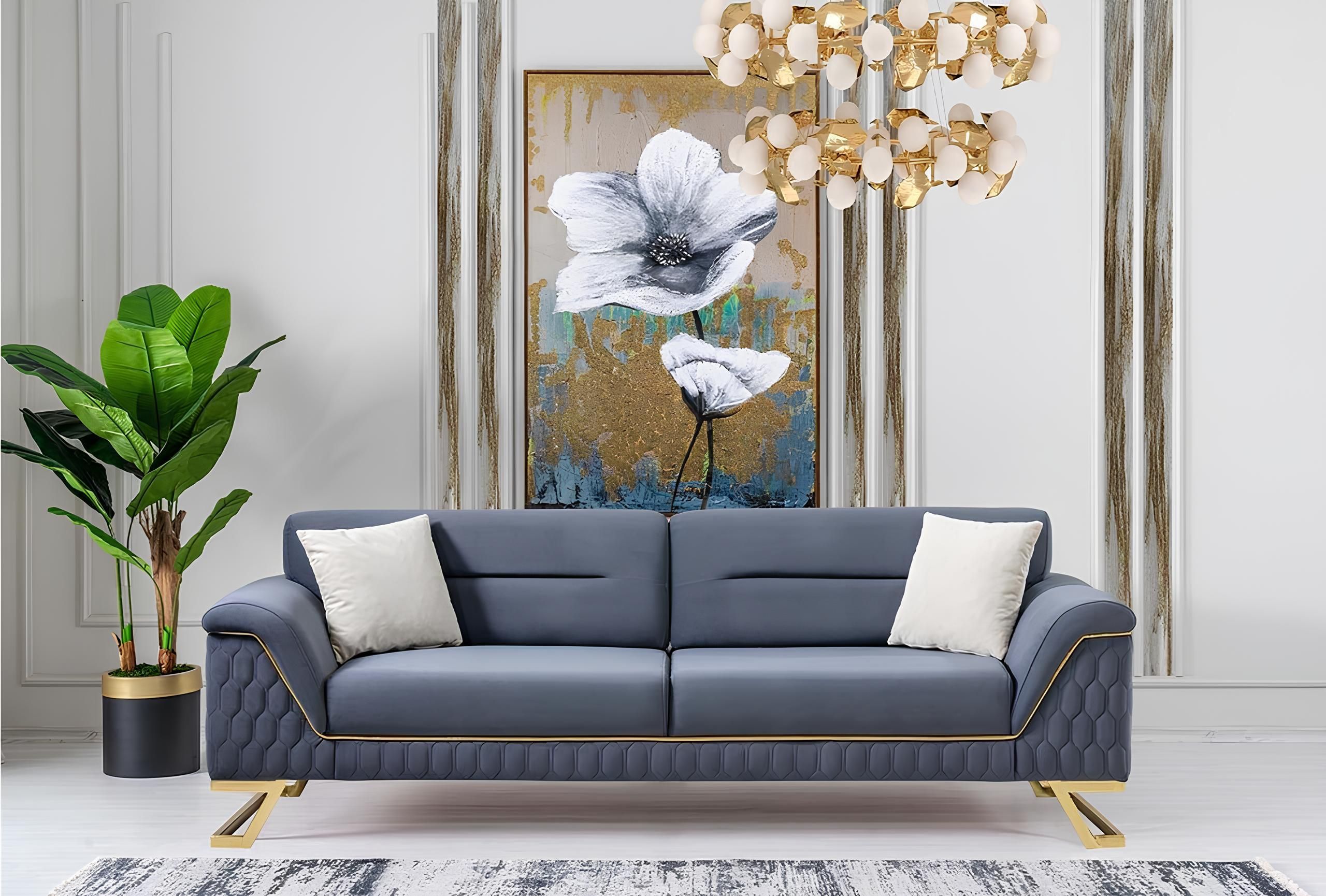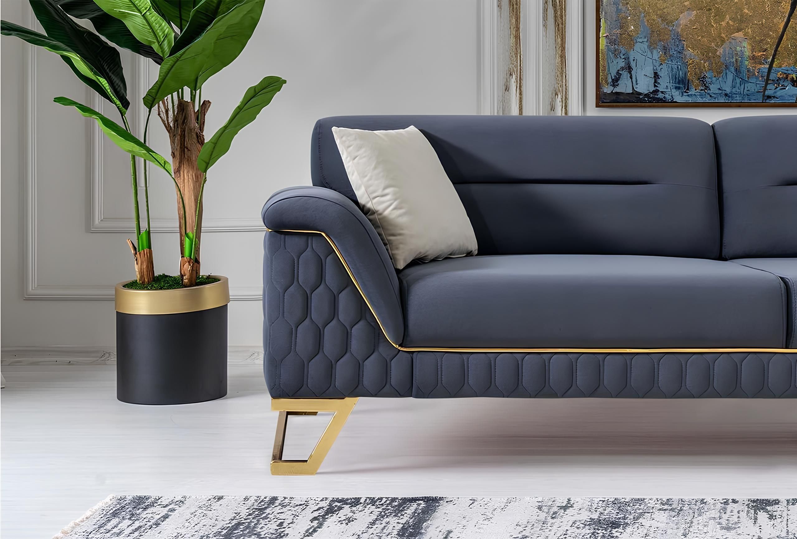 Blaue Wohnzimmer Sitzgarnitur Designer Ecksofa Luxus Moderner Sessel