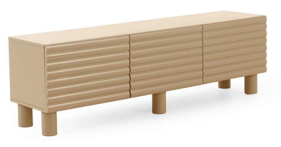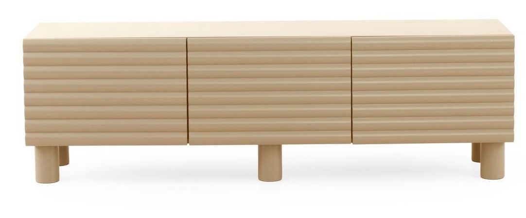 Blauer TV-Schrank mit gewellter Reliefstruktur an den Türen