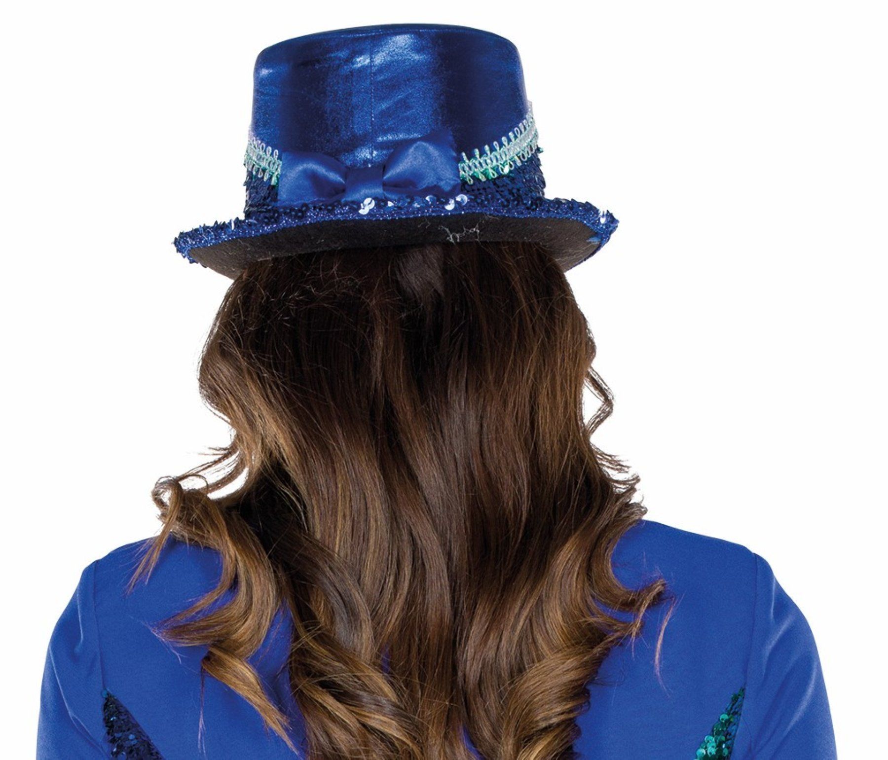 blauer Zylinder mit Wende Pailletten edler Hut Zirkus Motto Karneval Fasching