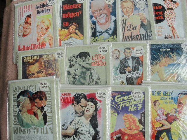 BlechKarte Grußkarte alte Filme Rühmann Liselotte Pulver Sophia Loren....& Aufhänger