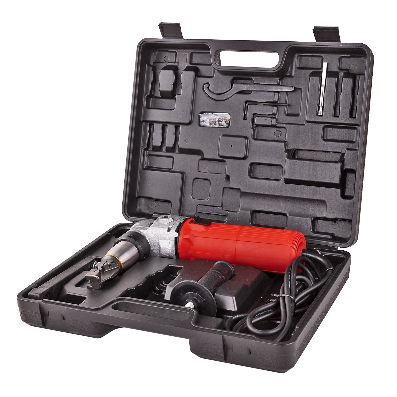 Blechnibbler / Blechschere / Blechschneider BN 2,5/4,0 mm Der DEMA Blechnibbler BN 2,5/4,0 mm ist ein leistungsstarker Blechschneider, der für professionelle Anwendungen konzipiert wurde. Er ermöglicht das mühelose Durchtrennen von Blechdicken bis zu 4 mm und bietet dabei eine hohe Flexibilität und Benutzerfreundlichkeit. Produktmerkmale: Kompakte Bauform: Erleichtert die Handhabung in beengten Platzverhältnissen.Verstärkte Stanzwerkzeugführung: Für präzises und stabiles Schneiden.Verlängerungsbügel: Erlaubt das Anbringen des Zusatzhandgriffs für besseren Halt.360° drehbarer Knabberkopf: Ermöglicht vielseitige Schneidwinkel.Hochwertige, professionelle Ausführung: Für den anspruchsvollen Einsatz.Zubehör: Enthält einen Ersatzstempel (Messer) und zwei Ersatzkohlen. Technische Daten: Schnittleistung: In Stahl: bis zu 4 mmIn Edelstahl: bis zu 2,5 mmIn Plastik: bis zu 4 mmSchnittbreite: 6,5 mmLeistung: 625 WattSpannung: 230 Volt / 50 HzHubzahl: 1000/minGeräuschpegel: Schallleistungspegel LwA 90,9 dB(A)Schutzklasse: IISchutzart: IP 20Zuleitung: ca. 200 cmGewicht: 3,98 kg (Maschine), 5,22 kg (inkl. Koffer)Abmessungen:Ohne Griff: 30x9x23 cmMit Griff: 30x22x23 cmKoffer: 41x9,5x33 cm Der DEMA Blechnibbler ist ideal für Profis und Hobbyhandwerker, die Wert auf Qualität und Zuverlässigkeit legen. Er eignet sich perfekt für eine Vielzahl von Schneidarbeiten in Metall, Edelstahl und Kunststoff. Technische DatenSchnittleistung in Stahl: Bis zu 4 mmSchnittleistung in Edelstahl: Bis zu 2,5 mmSchnittleistung in Plastik: Bis zu 4 mmSchnittbreite: 6,5 mm230 Volt / 50 Hz625 WattSchutzklasse: IISchutzart: IP 20Schallleistungspegel LwA: 90,9 dB(A)Zuleitung: ca. 200 cmHubzahl: 1000/minMaschinengewicht 3,98 kgGesamtgewicht inkl. Koffer 5,22 kgAbmessung LxBxH: 30x9x23 cm (ohne Griff) 30x22x23 cm (mit Griff)Abmessung Koffer LxBxH: 41x9,5x33 cm