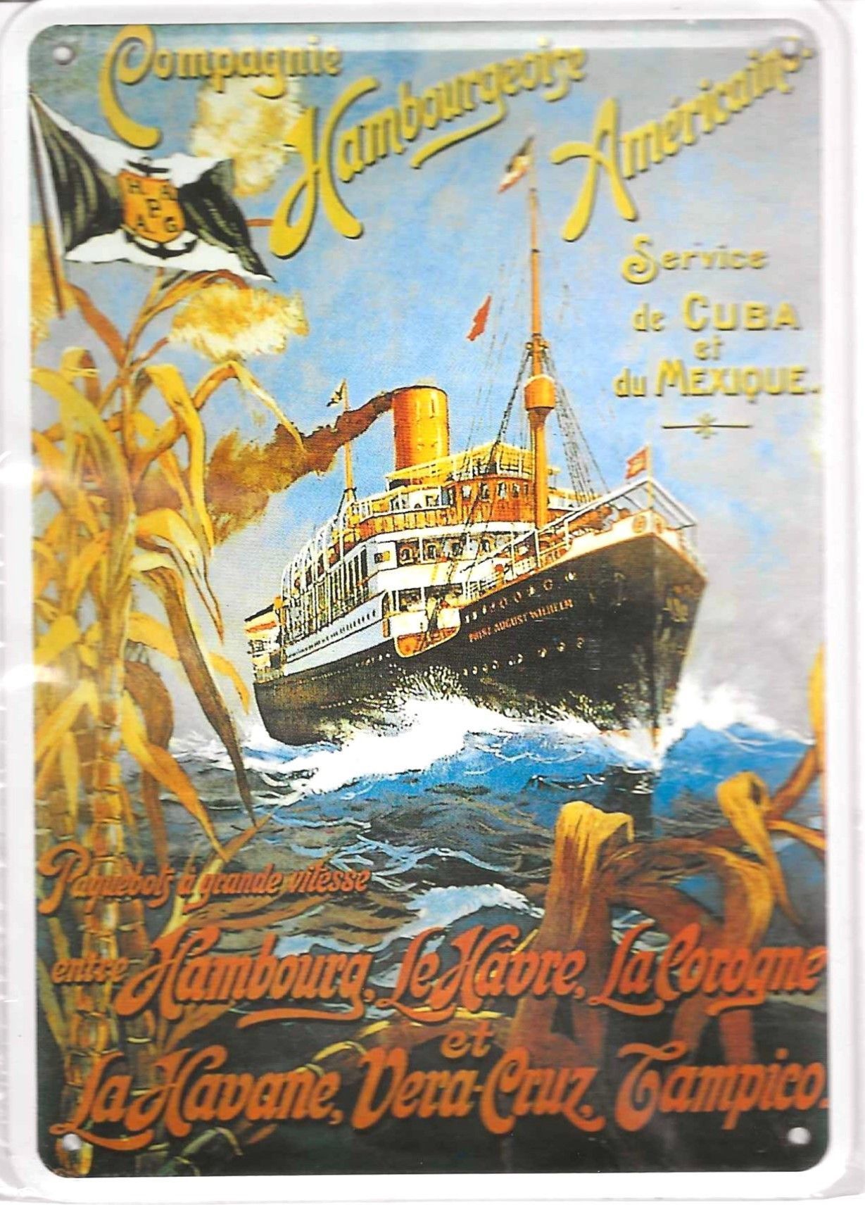 Blechpostkarte 14,5 cm x 10,0 cm Schiff Hamburg America Cuba Mexiko Route Compagnie