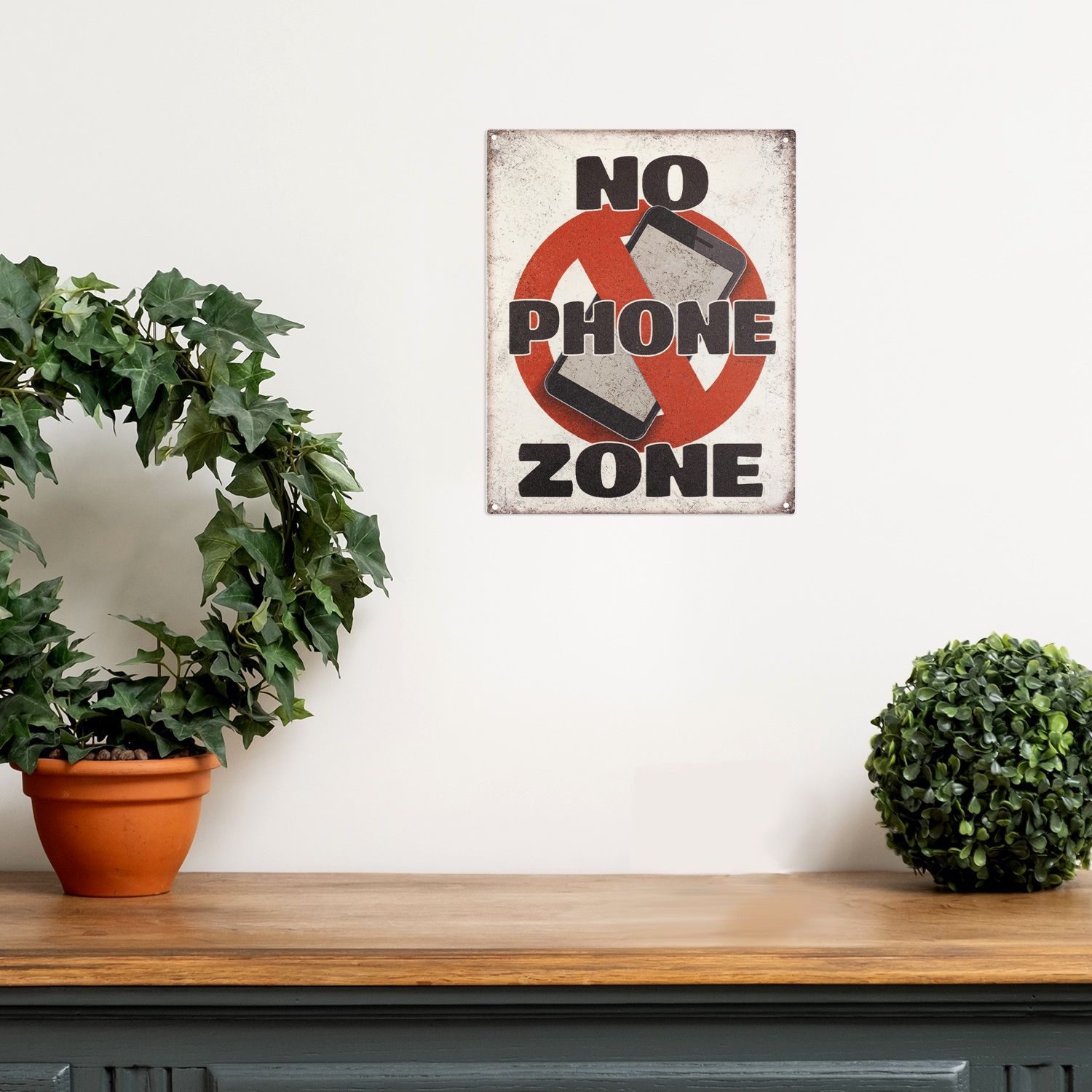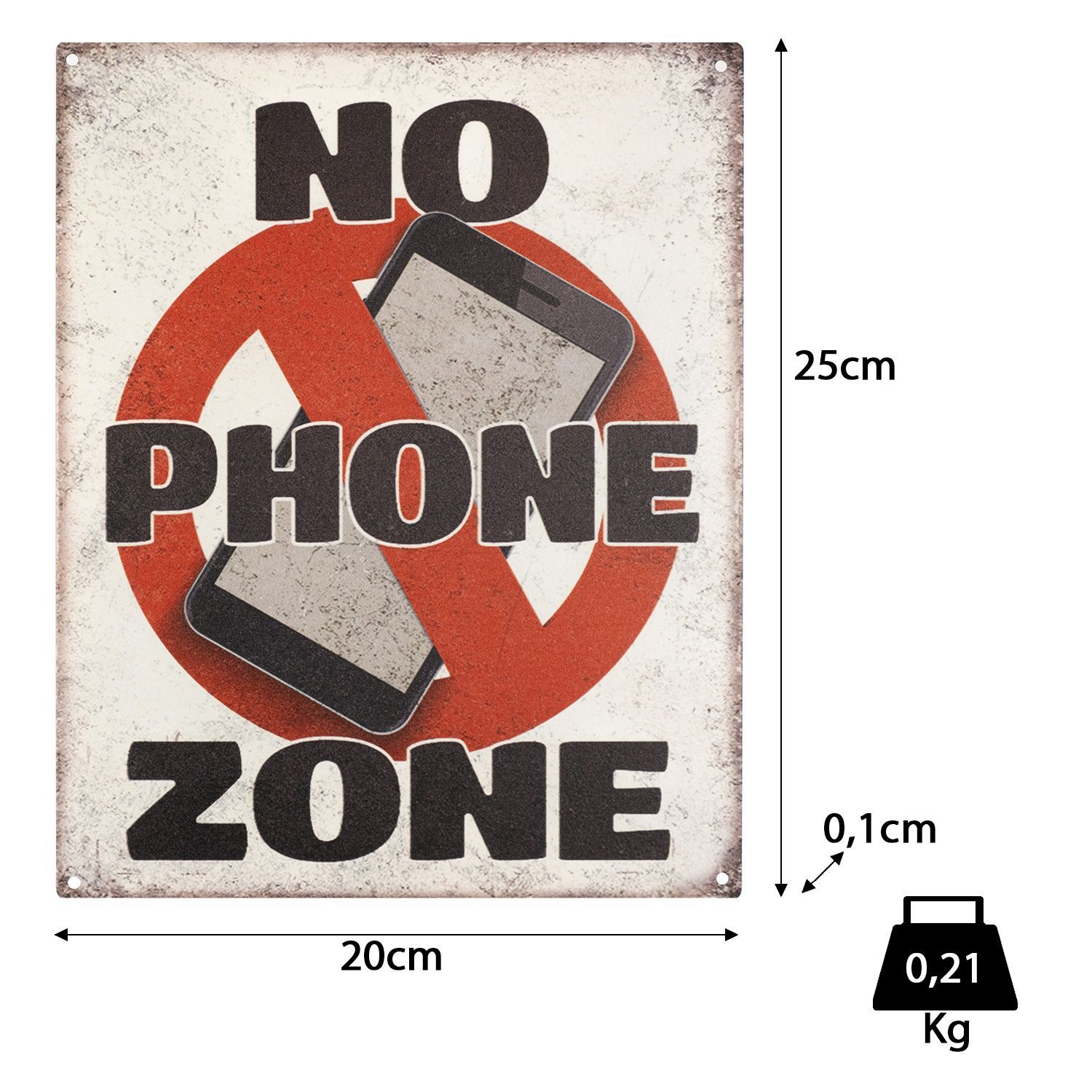 Blechschild 20 x 25 cm Handy verboten No Phone Zone Retro Vintage Tin sign Wand