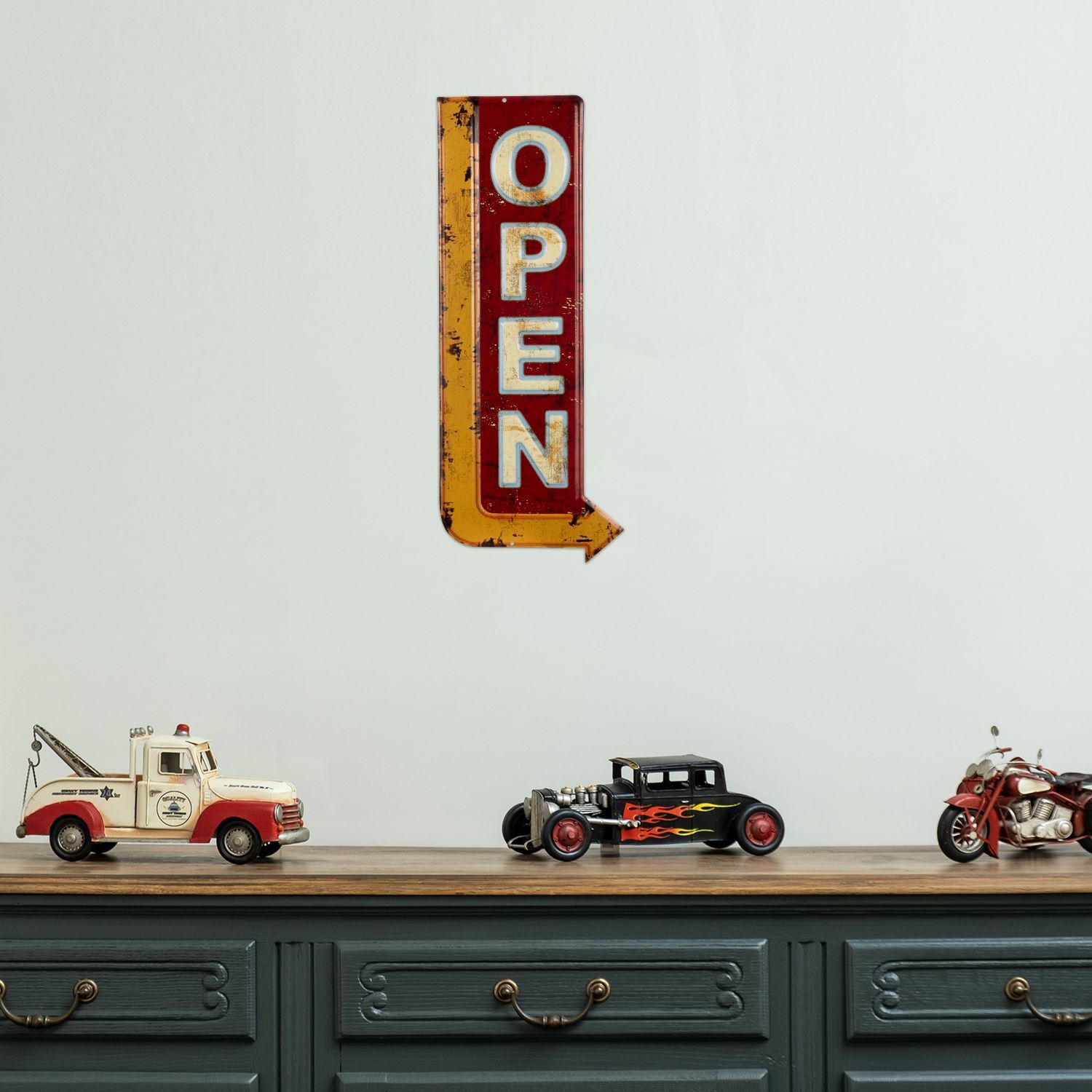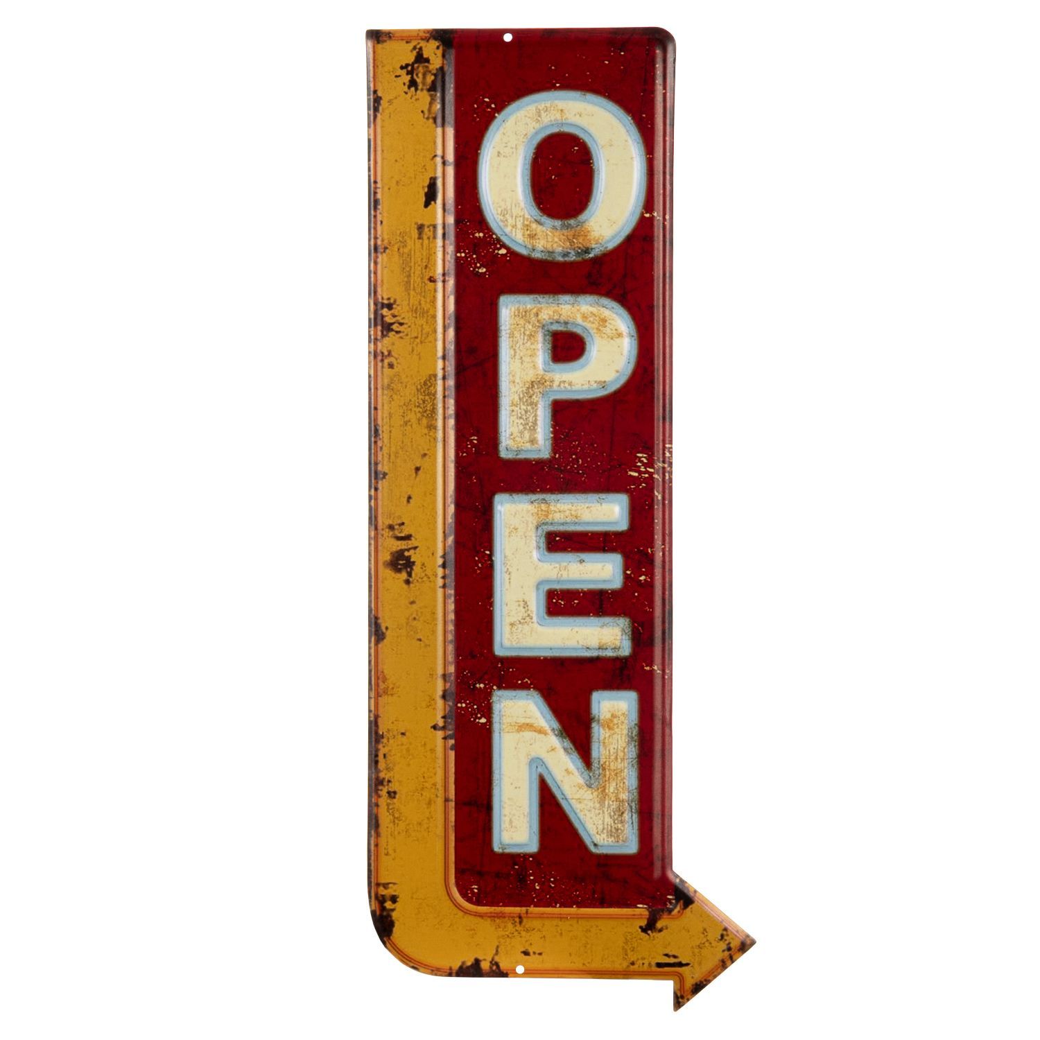 Blechschild 20 x 50 cm Open Pfeil Offen geöffnet Retro Vintage Tin sign Wand