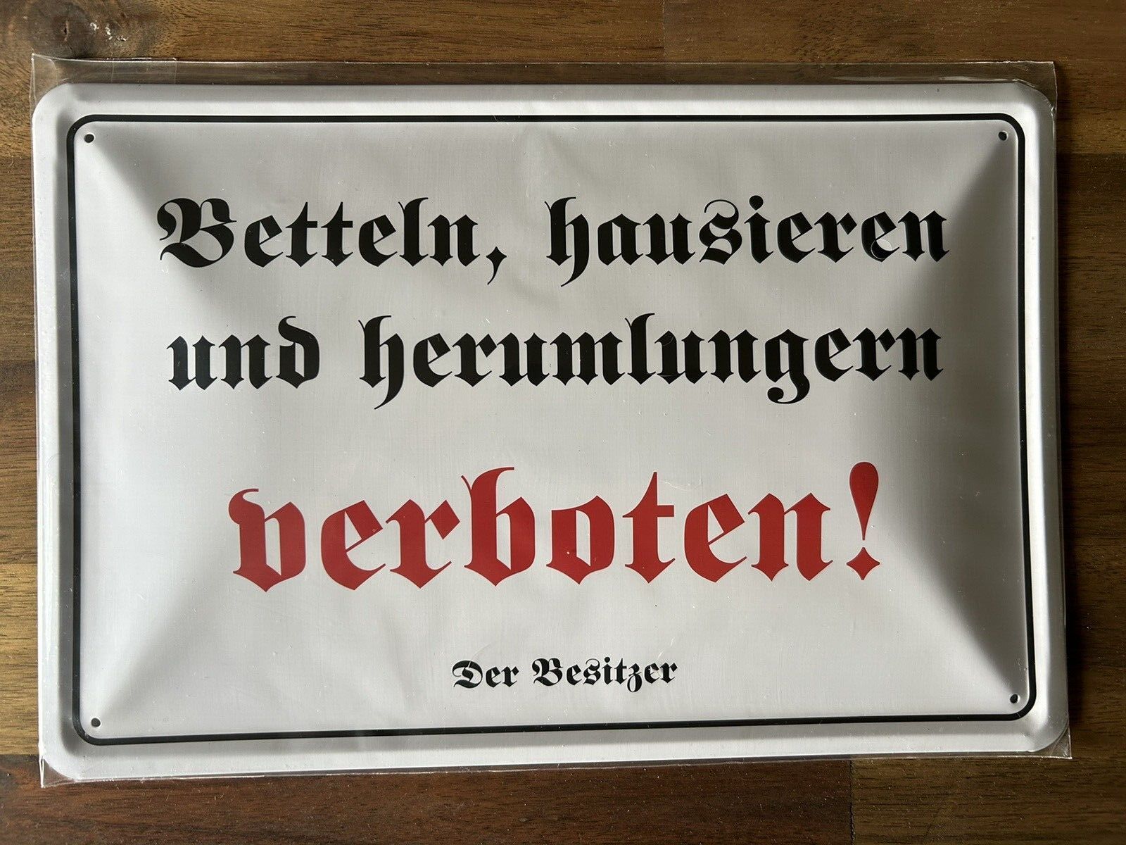 Blechschild 20x30 cm: Betteln, hausieren und herumlungern verboten !