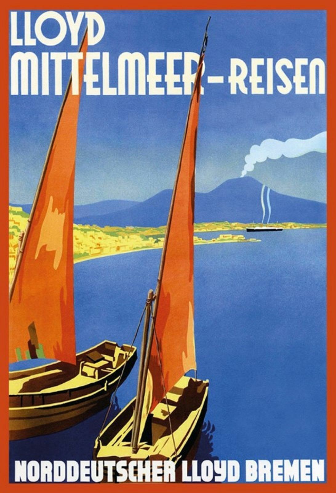Kaufen sie hier dieses coole, gewölbte Blechschild: Mittelmeer Reisen - Norddeutscher Lloyd in der Grösse 20 cm x 30 cm vorgebohrte Löcher Neuware, ovp Versand incl. Abholung in unserem Ladengeschaeft Retro World in 73563 Mögglingen - Lauterstrasse 27 möglich !