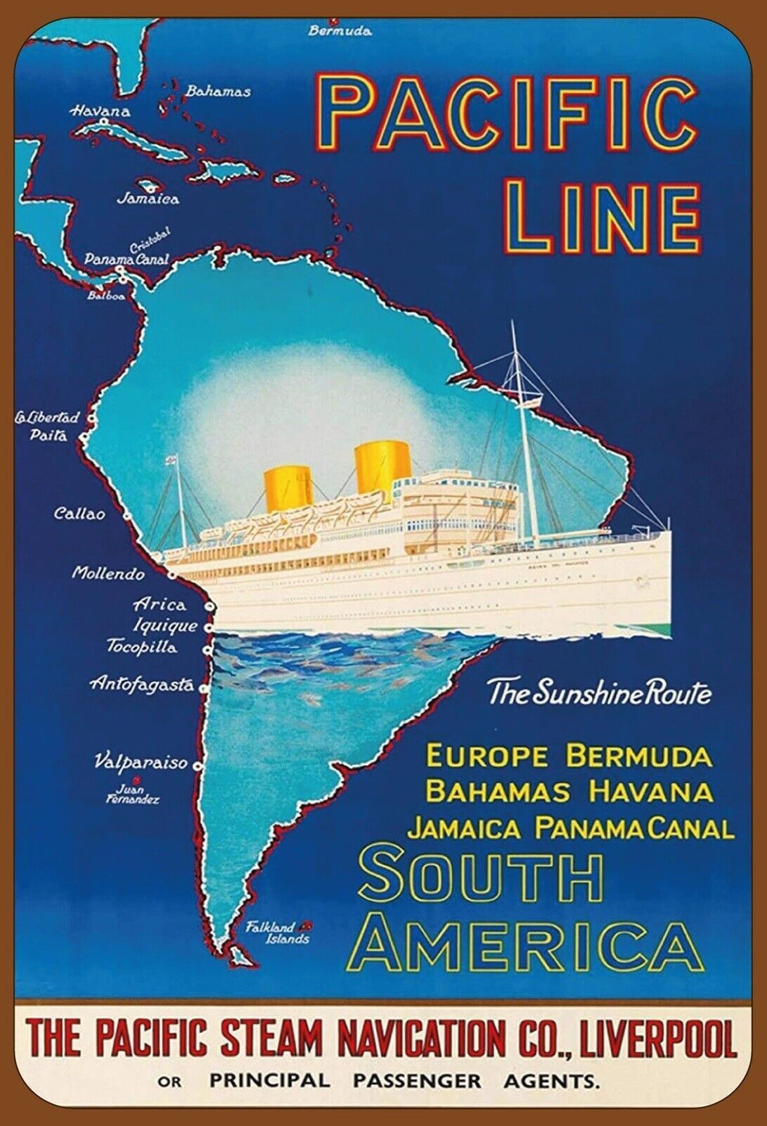Blechschild 20x30 cm: Pacific Line Europe - South America