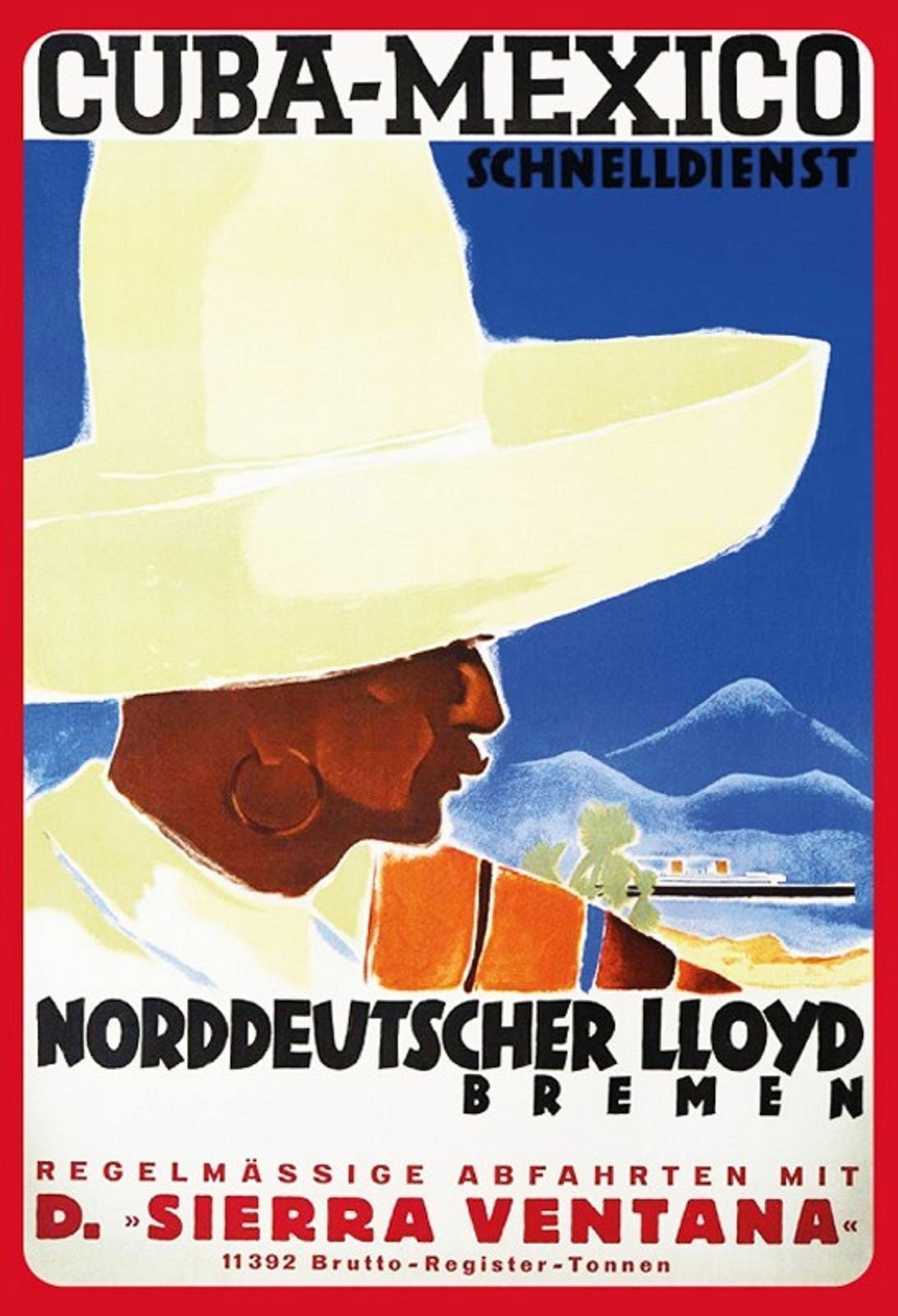 Blechschild 20x30 cm: Schnelldienst - Norddeutscher Lloyd: Cuba - Mexico