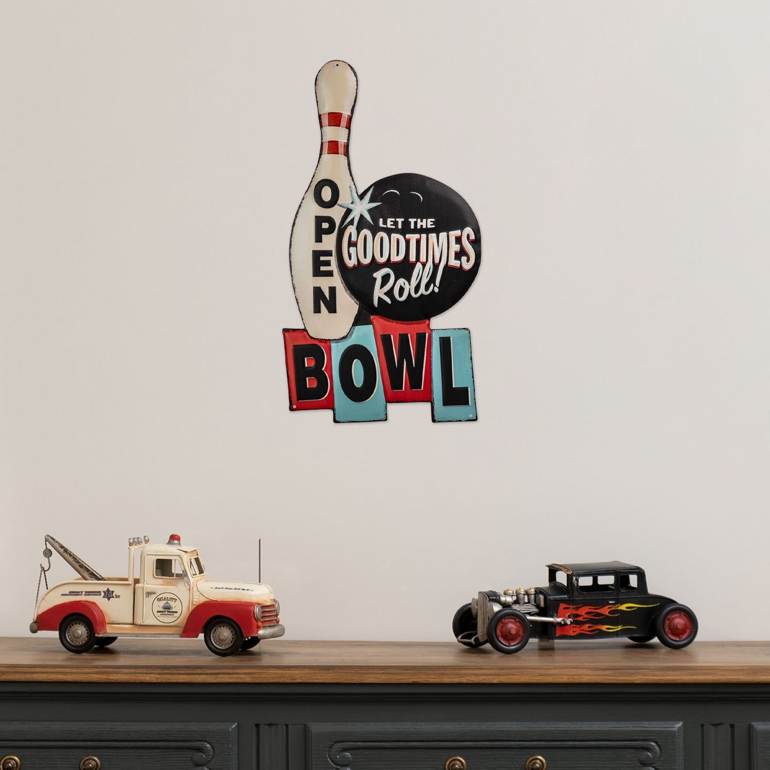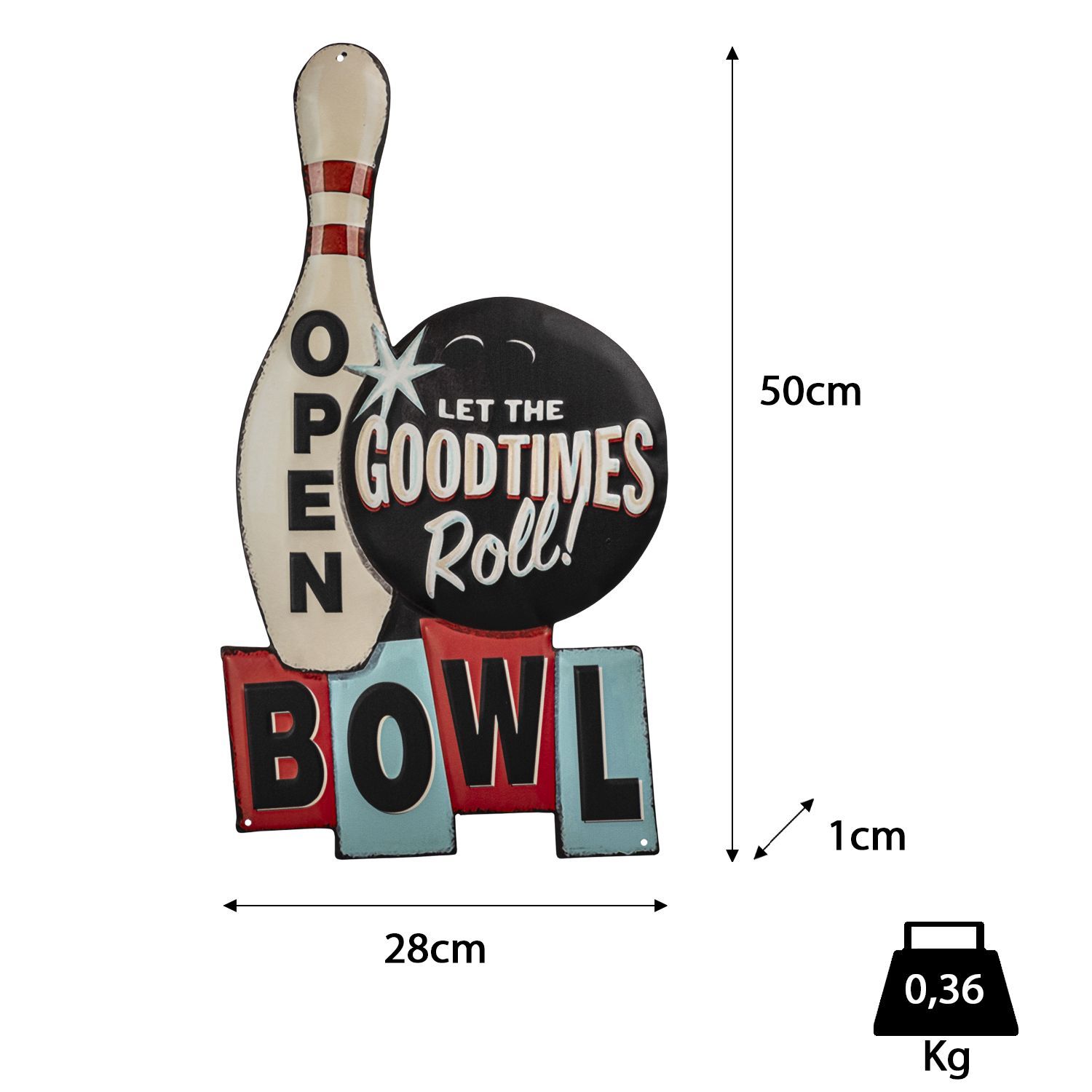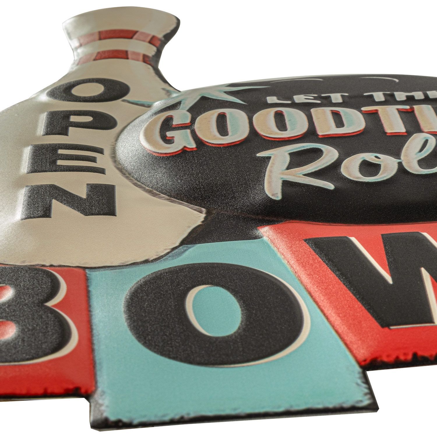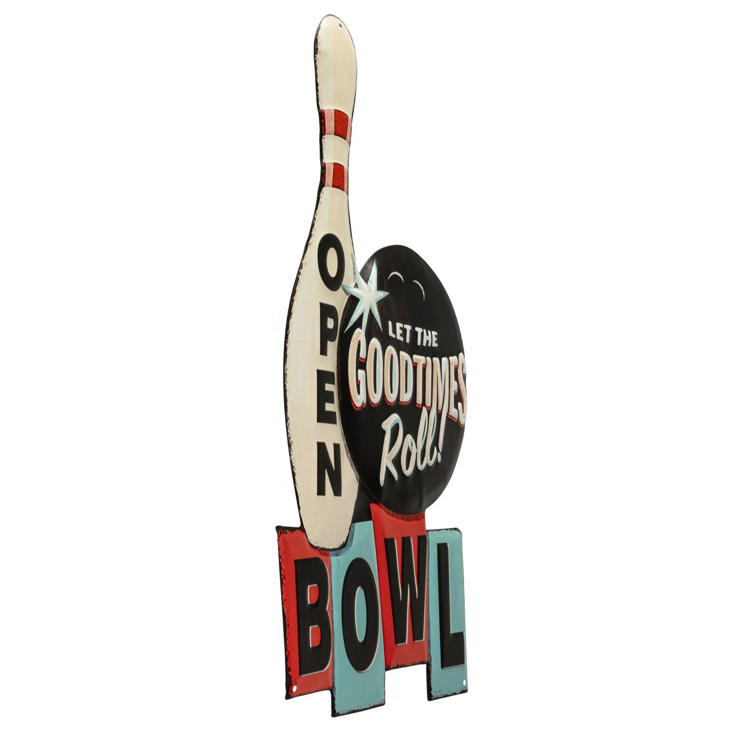 Blechschild 28 x 50 cm Open Offen Bowling Pin Kugel Kegel Retro Vintage Wand