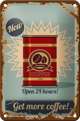 • Blechschild 18 x 12 cm - Open 24 hours Get more Coffee