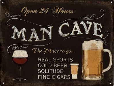 • Retro Deko Blechschild Open 24 Hours Man Cave Vintage-Design Metall Schild