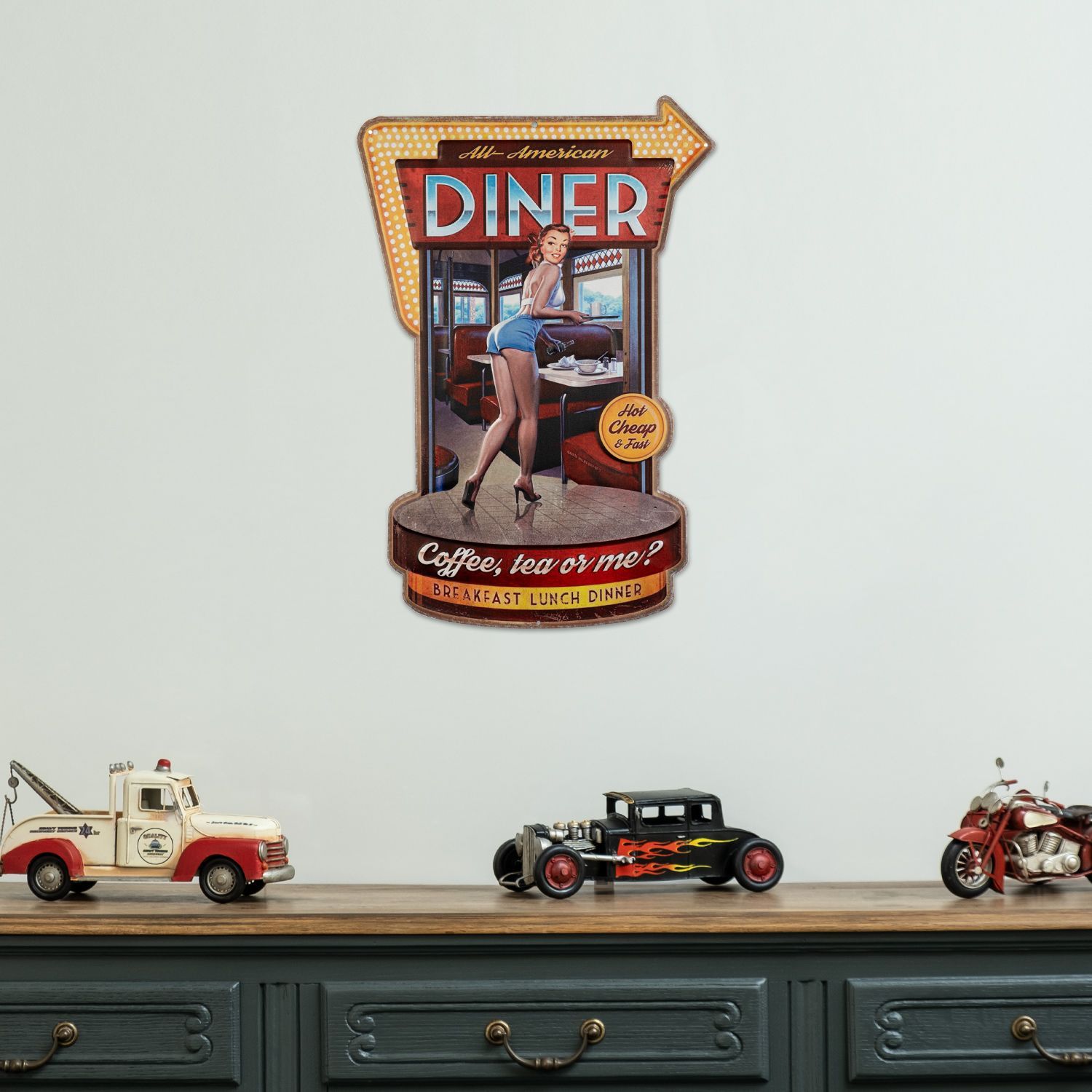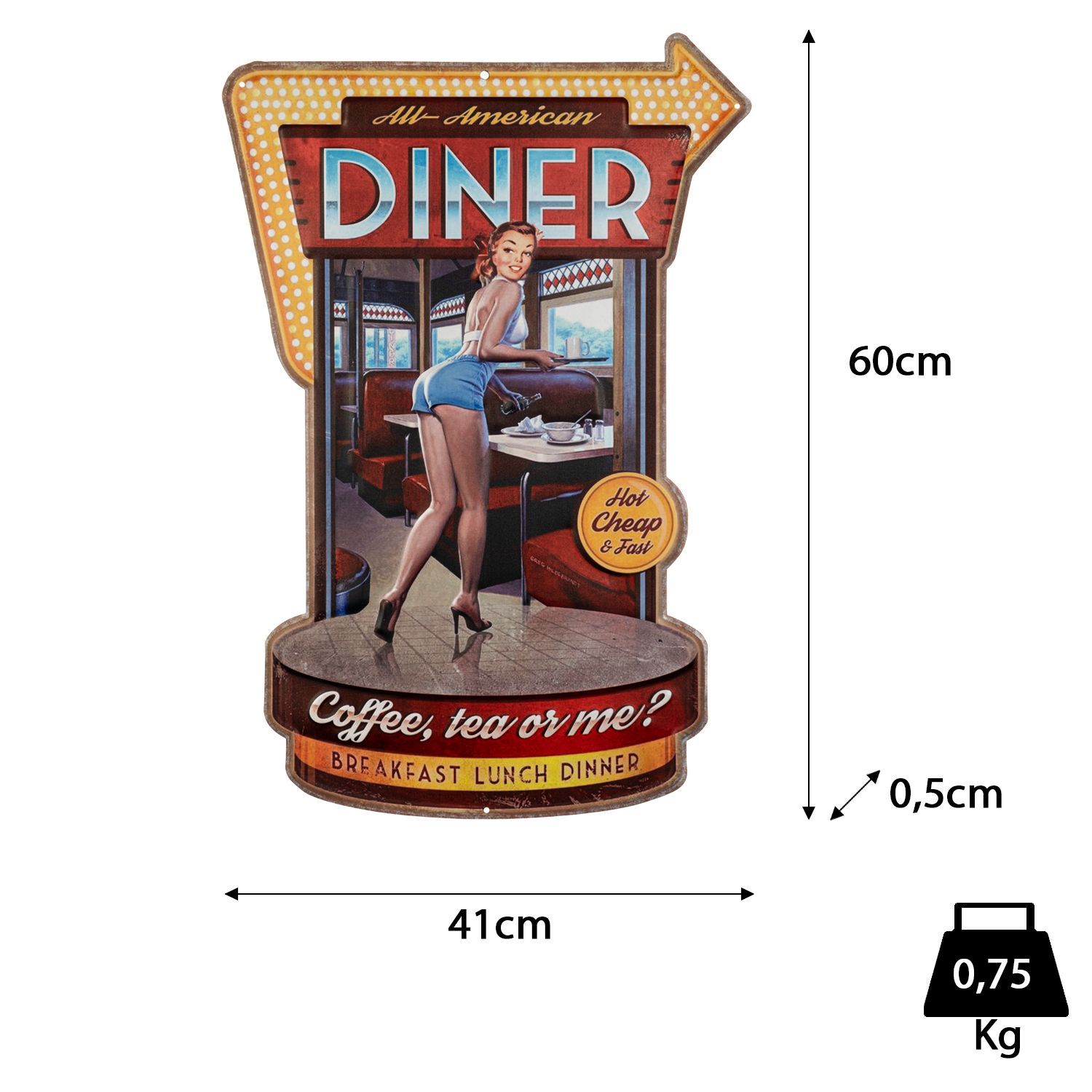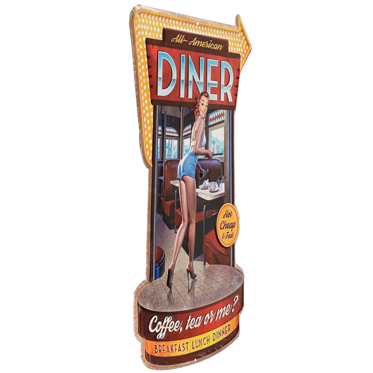 Blechschild 41 x 60 cm American Diner Amerika USA Frau Retro Coffee Retro