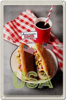 • Blechschild 30 x 20 cm American Diner USA Hot Dog & Cola