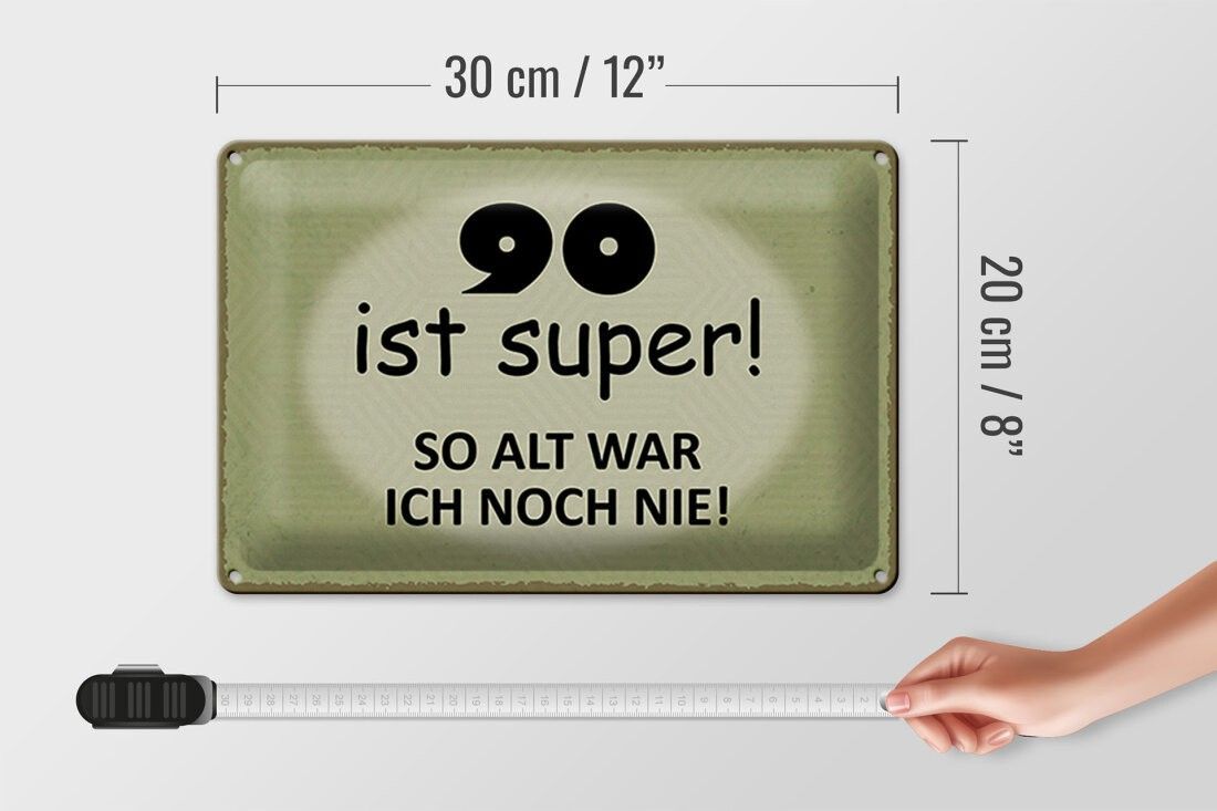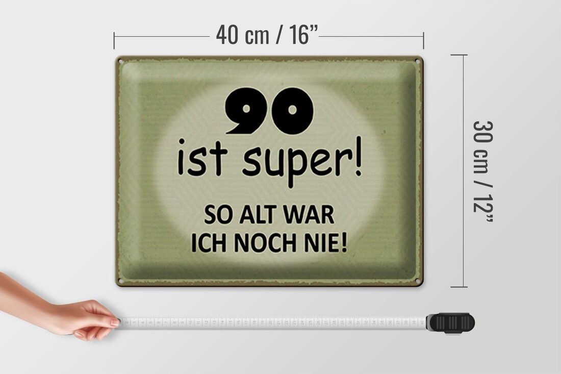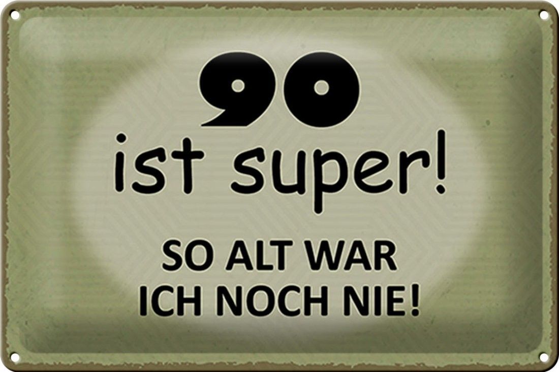 Blechschild 90 ist super so alt war ich noch nie, 3 verschied Größen Blechschilder