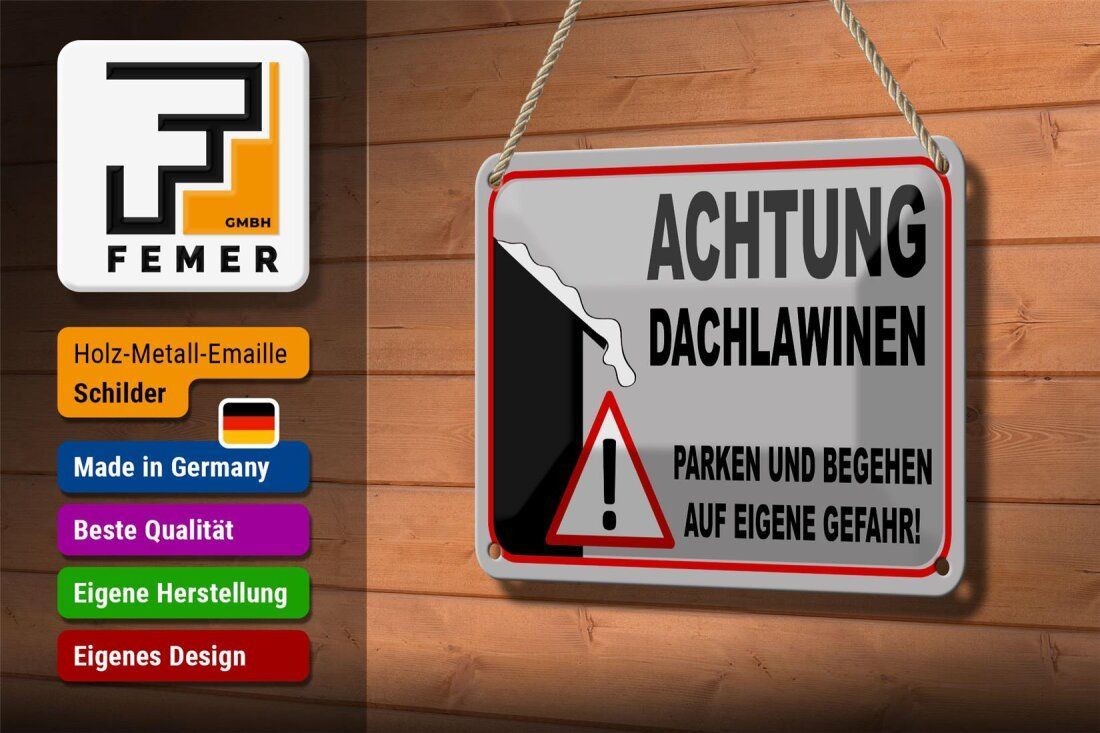 Blechschild "Achtung Dachlawinen Parken und begehen auf eigene Gefahr!" 18x12cm