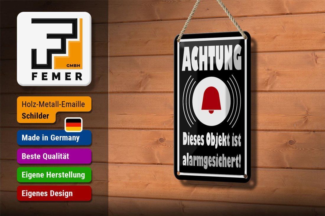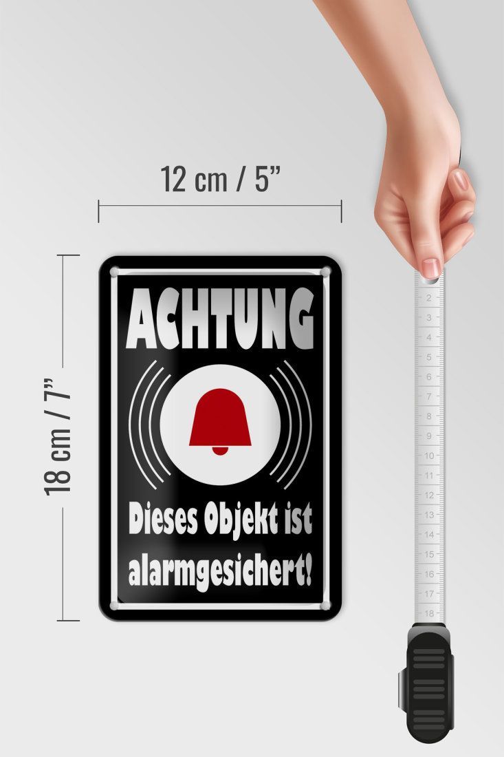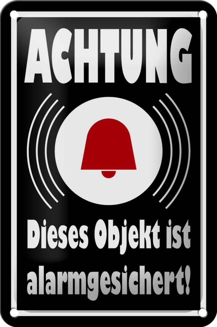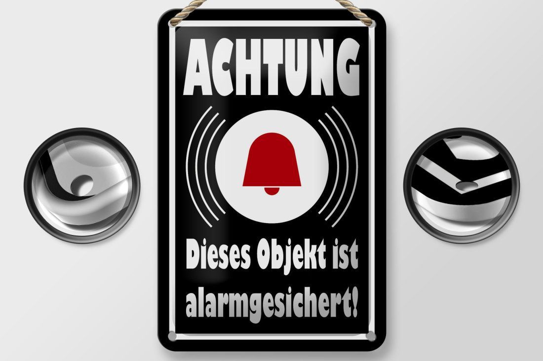Blechschild Achtung Dieses Objekt ist alarmgesichert 18x12cm schwarz weiß rot gewölbt