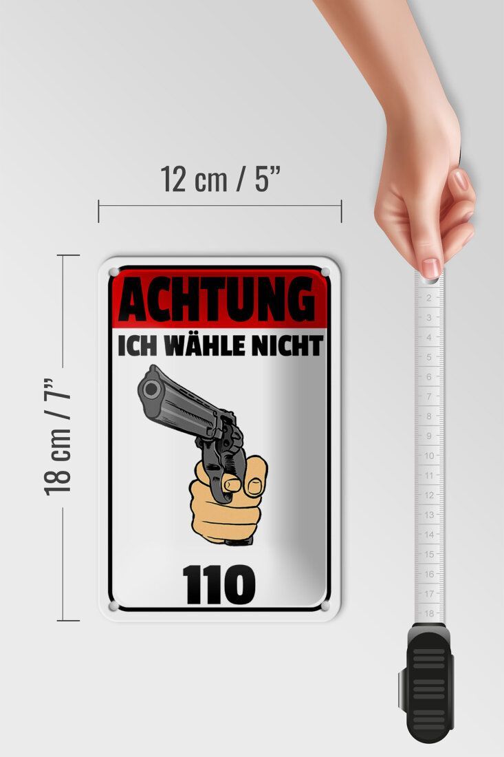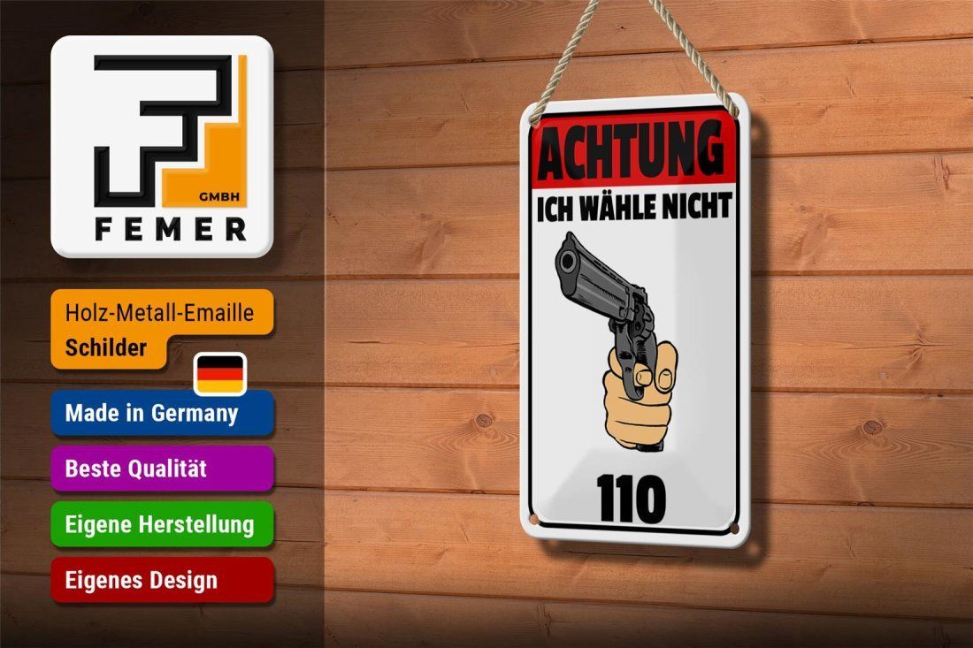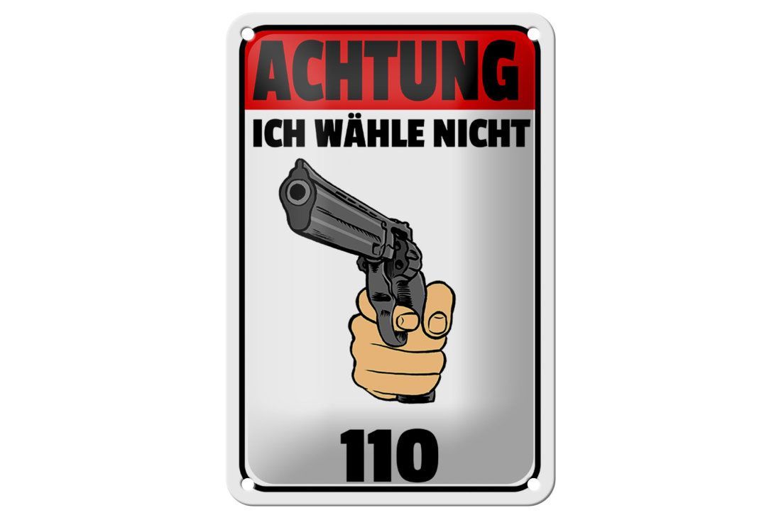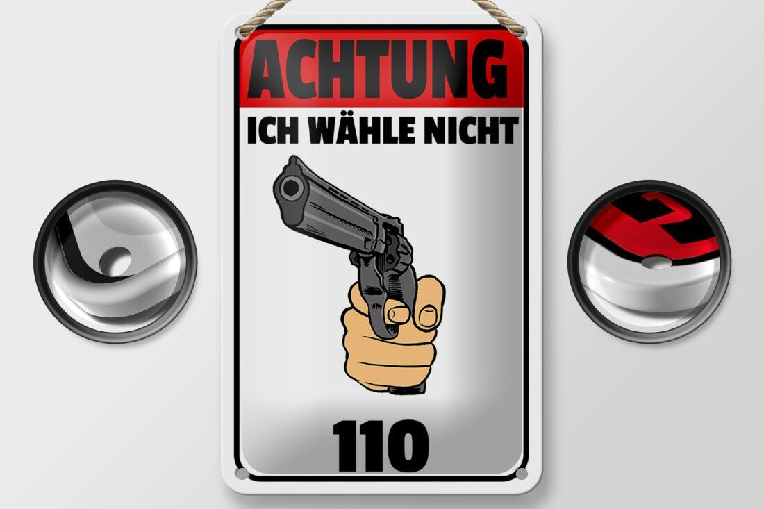Blechschild "Achtung ich wähle nicht 110" 18x12cm Revolver gewölbt