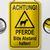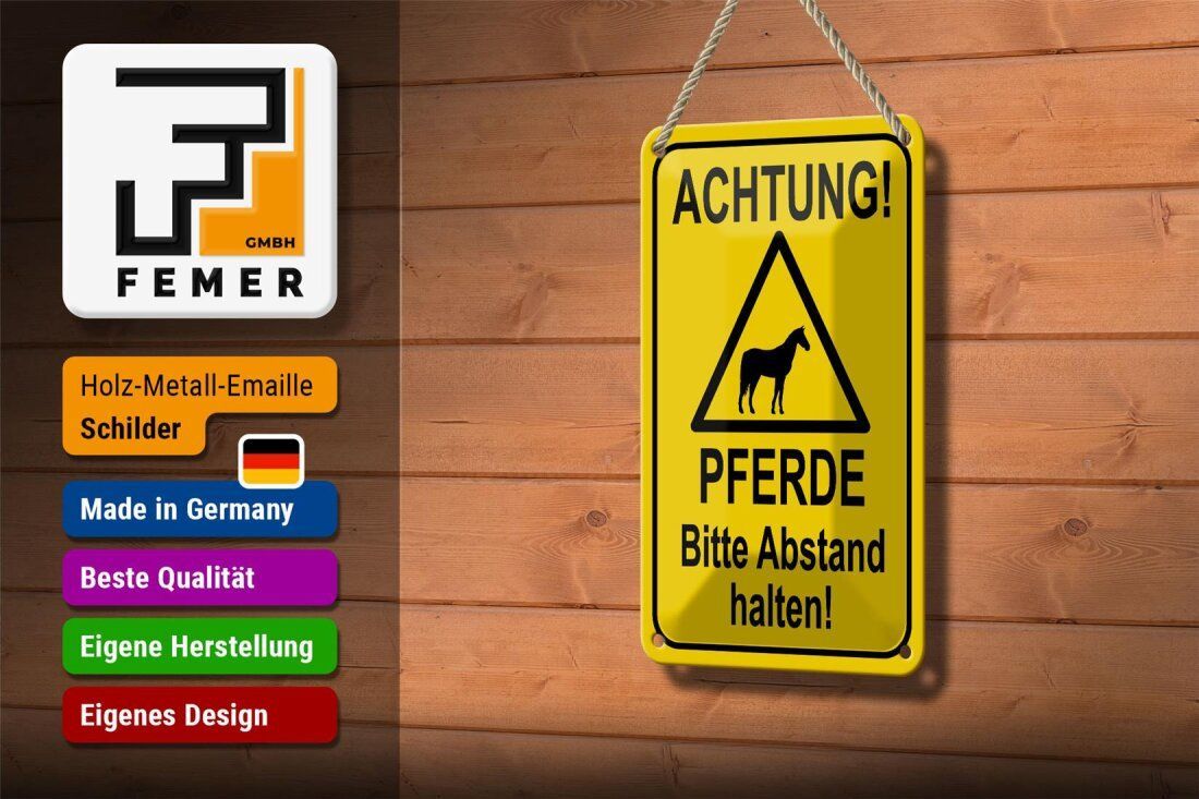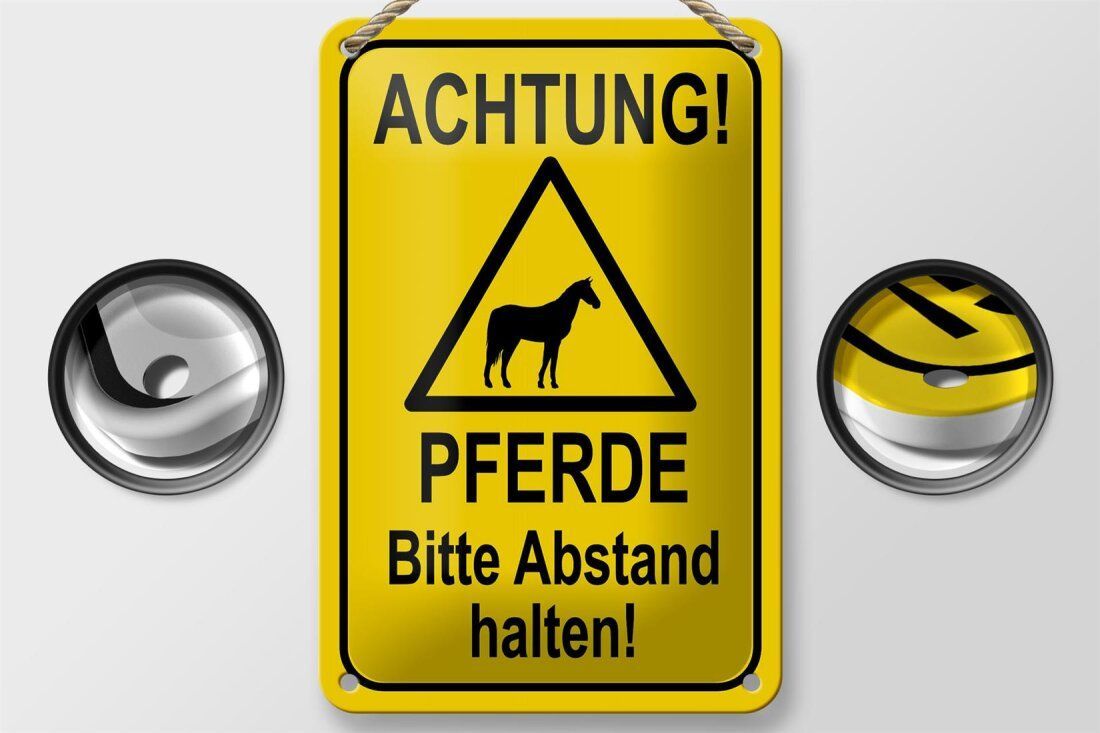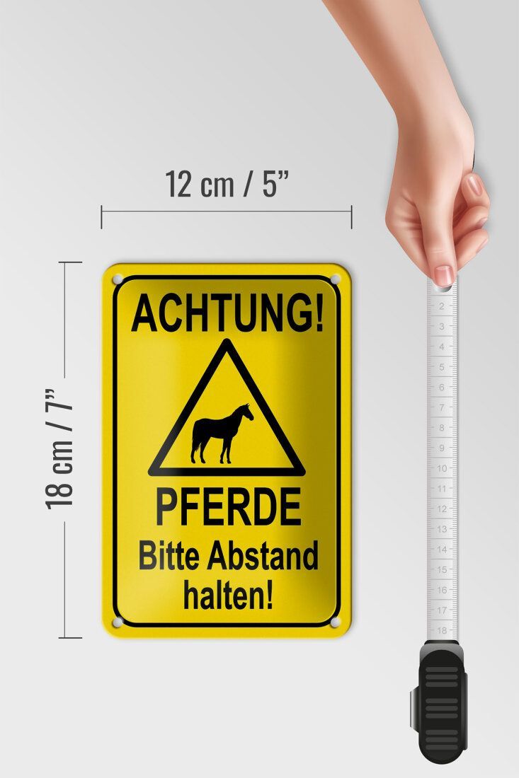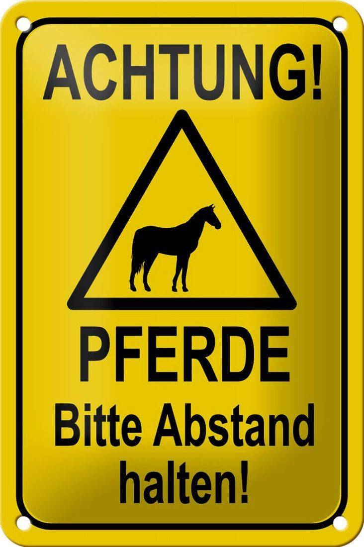 Blechschild Achtung! Pferde - Bitte Abstand halten! 18x12cm gelb schwarz gewölbt