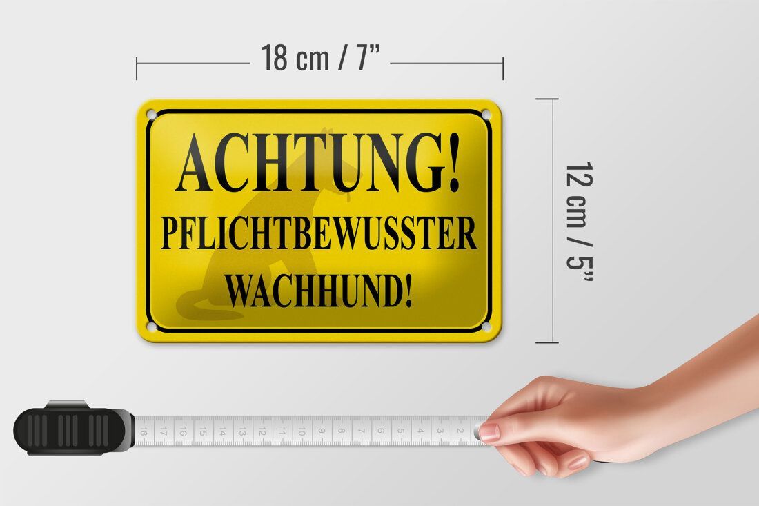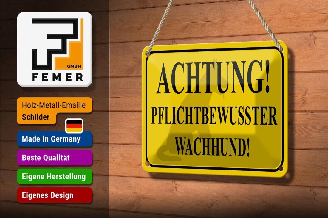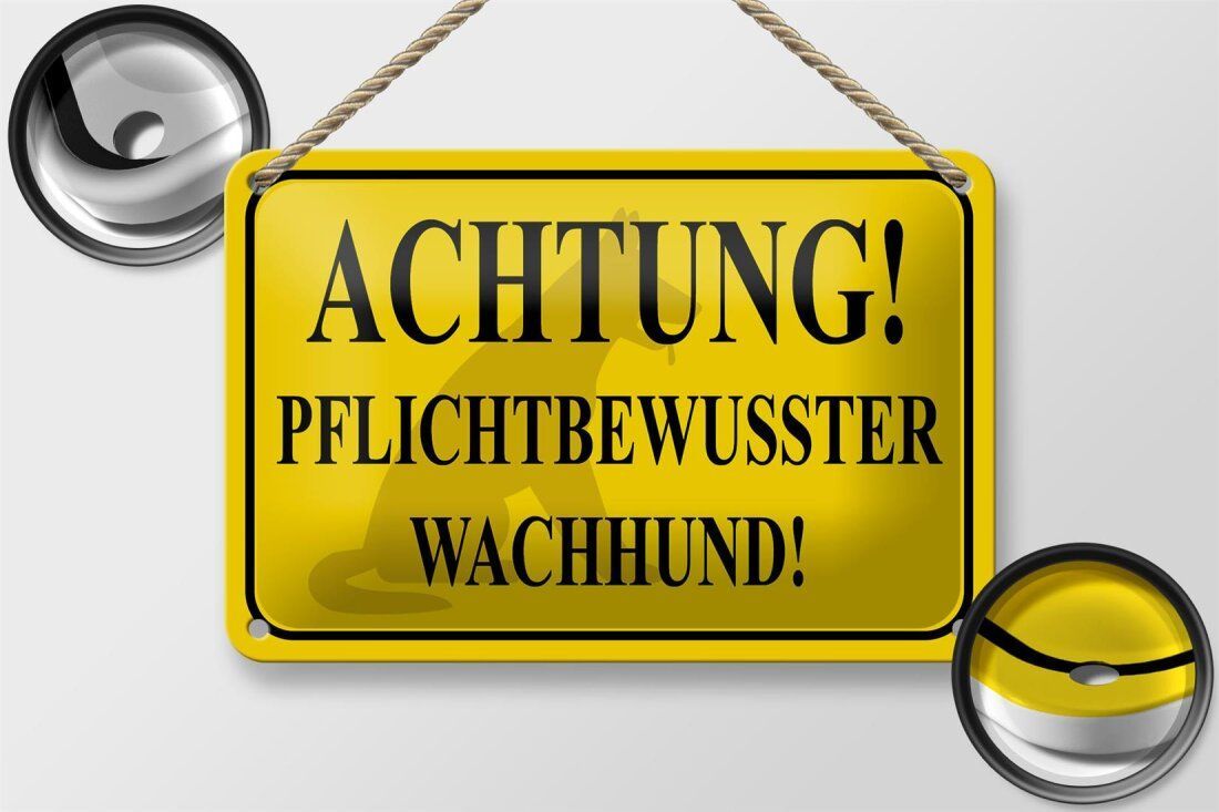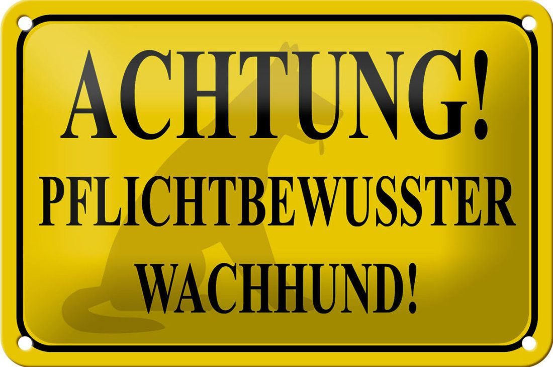 Blechschild "Achtung! Pflichtbewusster Wachhund" 18x12cm gelb gewölbt