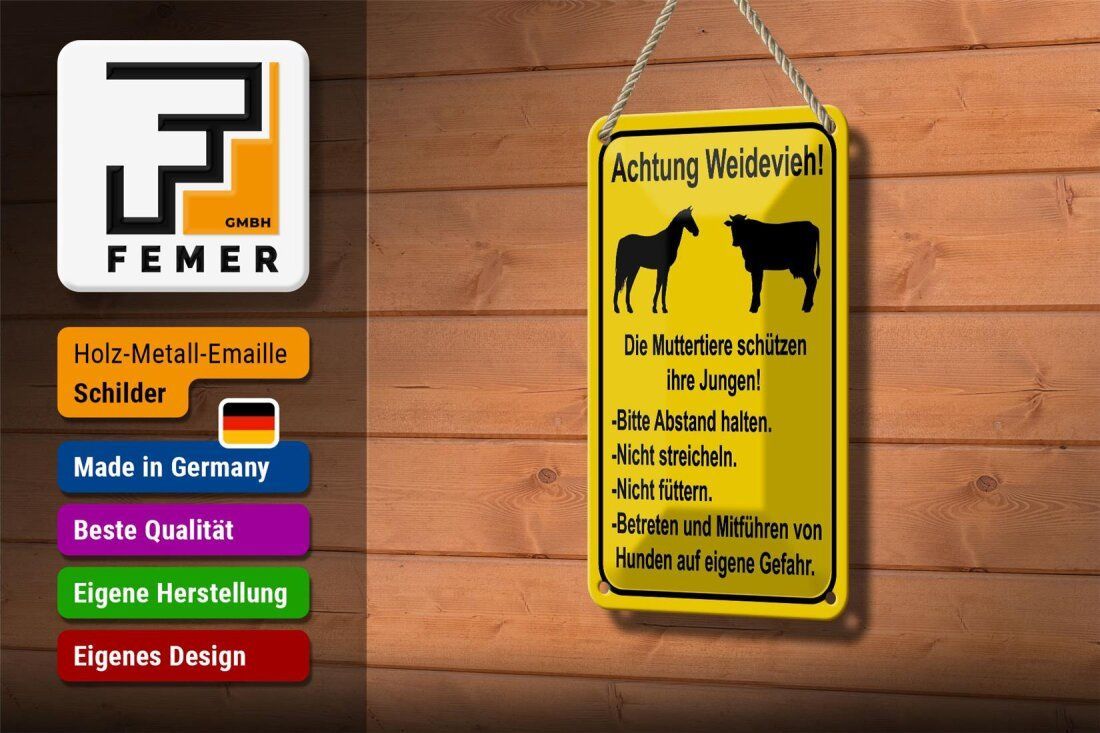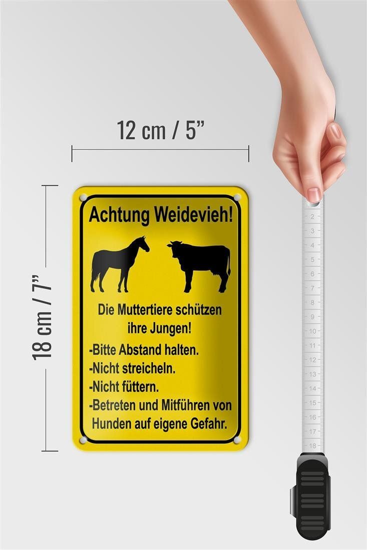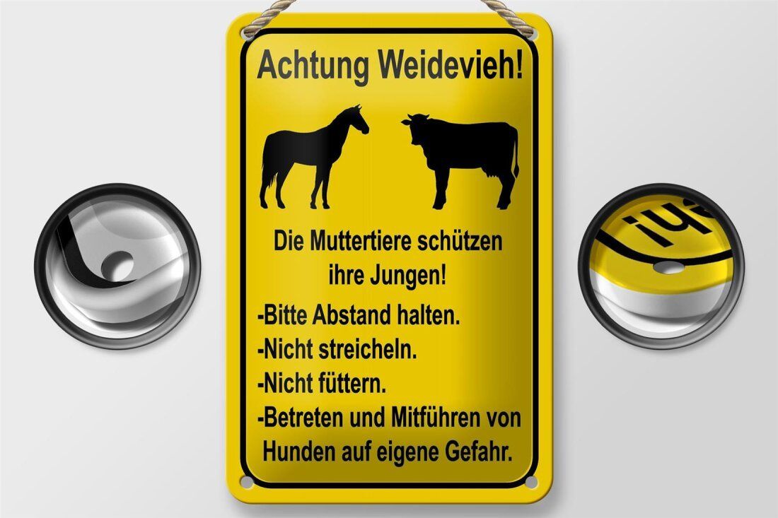 Blechschild Achtung Weidevieh! 18x12cm gelb schwarz gewölbt