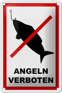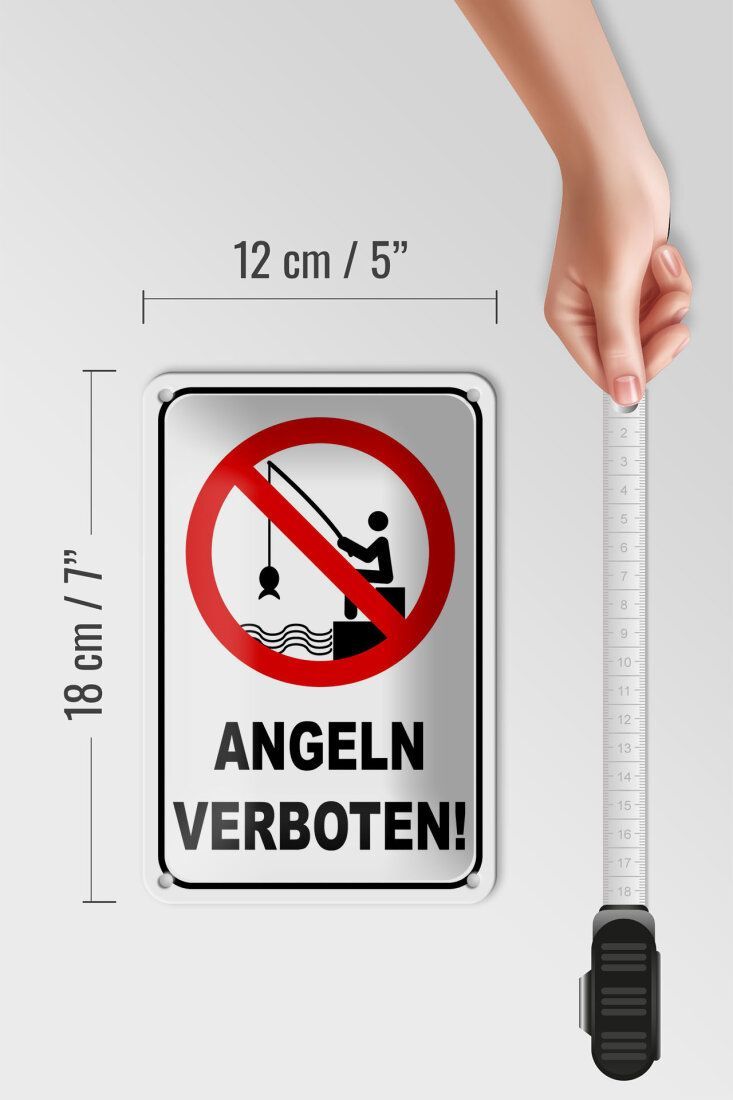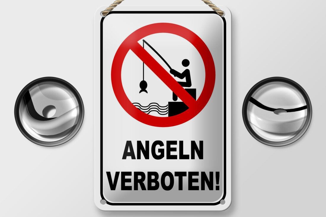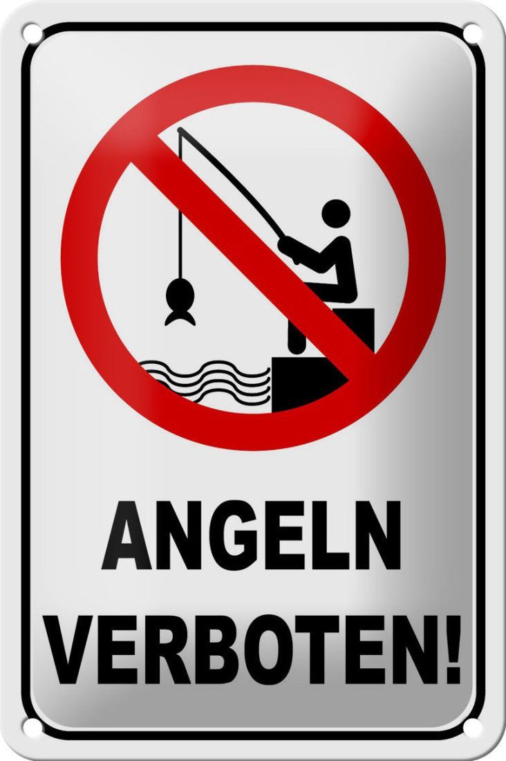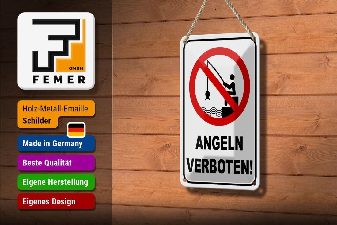 Blechschild Angeln verboten 18x12cm mit Angler gewölbt