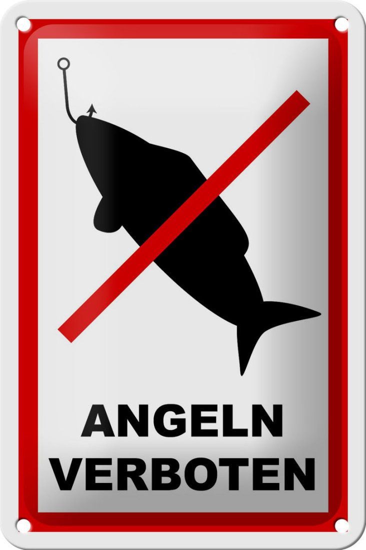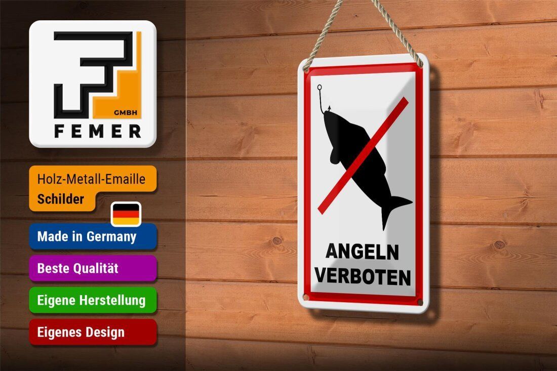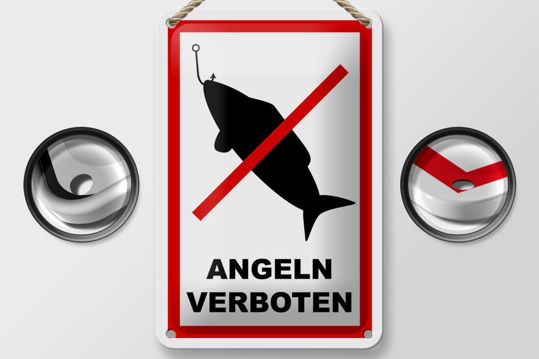 Blechschild Angeln verboten 18x12cm mit Fisch gewölbt