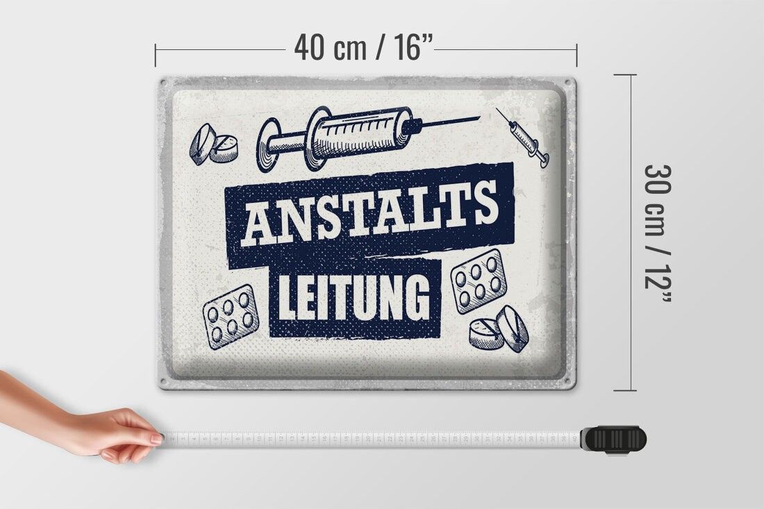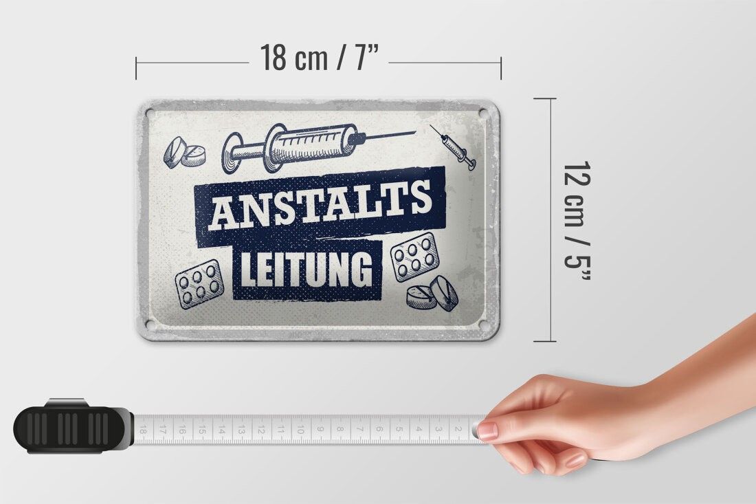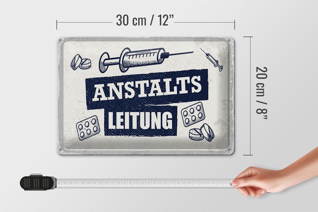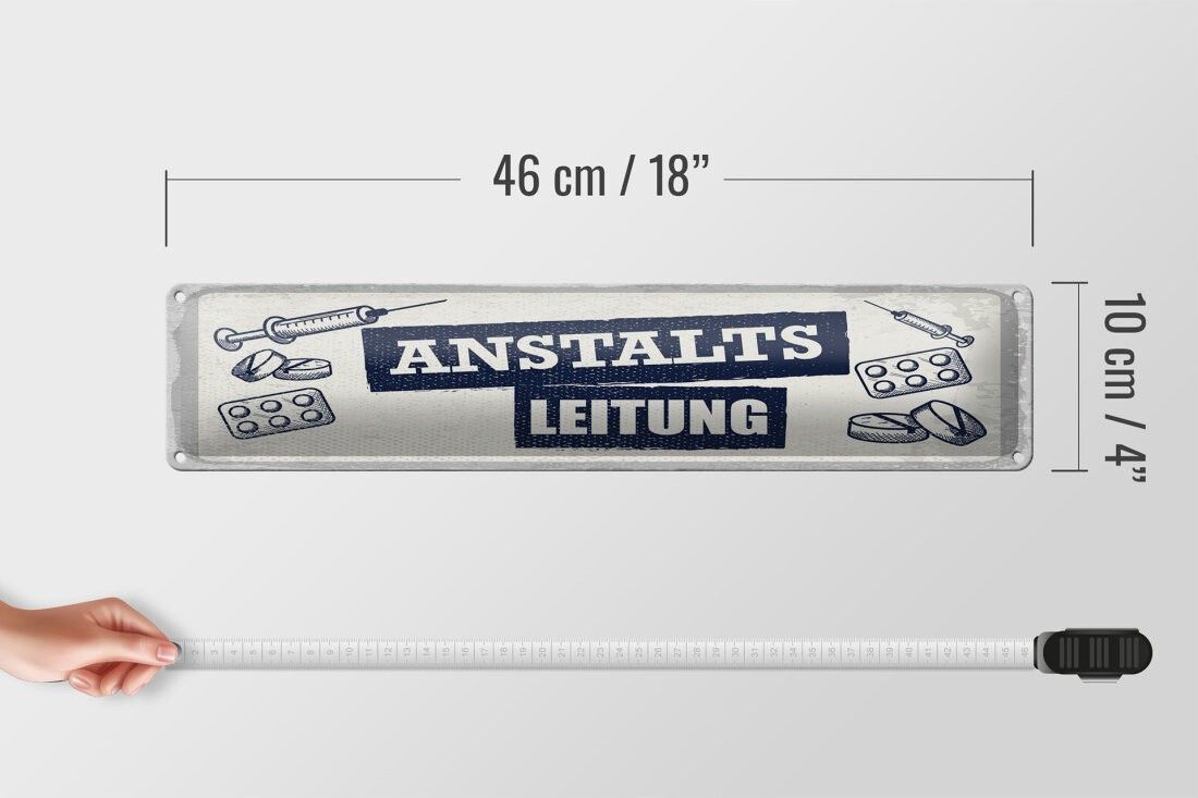 Blechschild Anstaltsleitung Spritze Tabletten, 4 verschied Größen, Spruch,