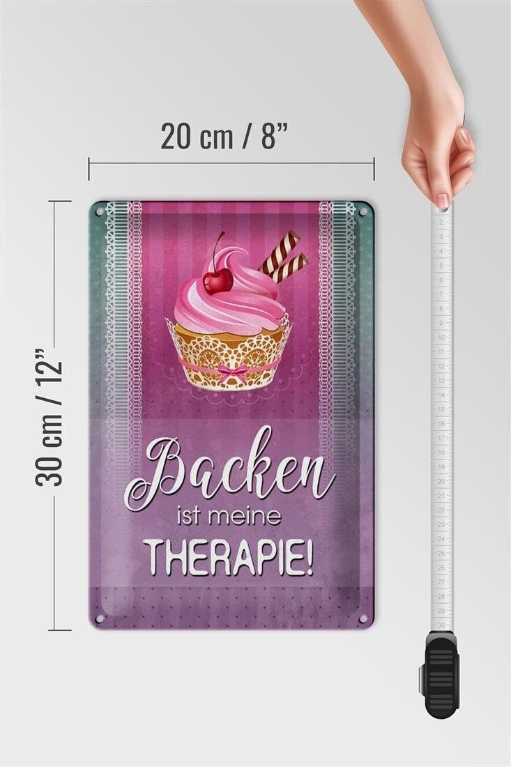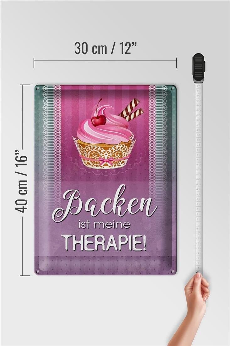 Blechschild Backen ist meine Therapie, 3 verschied Größen, Spruch Hobby