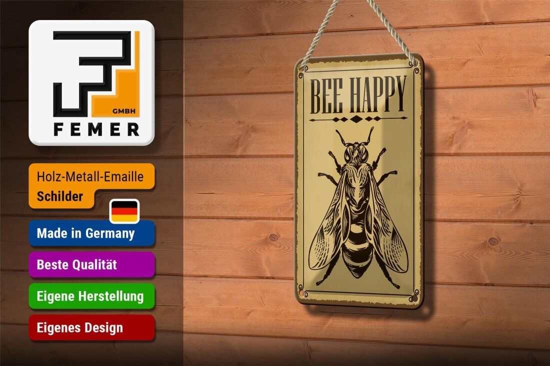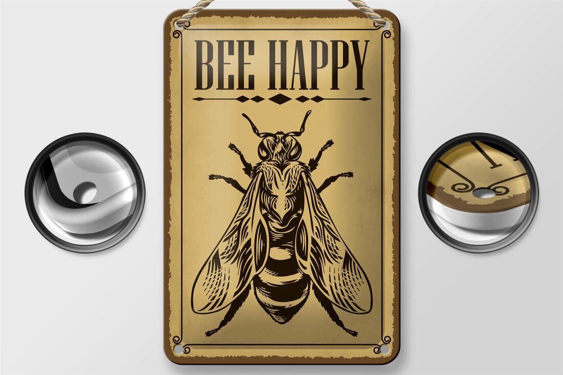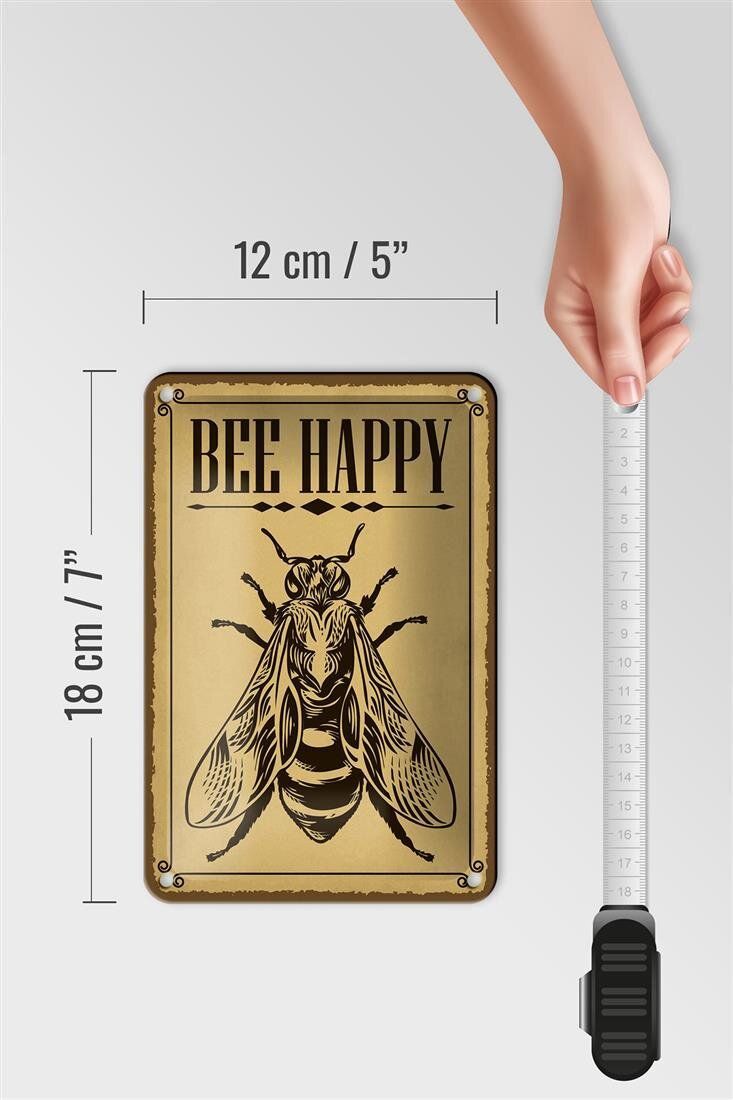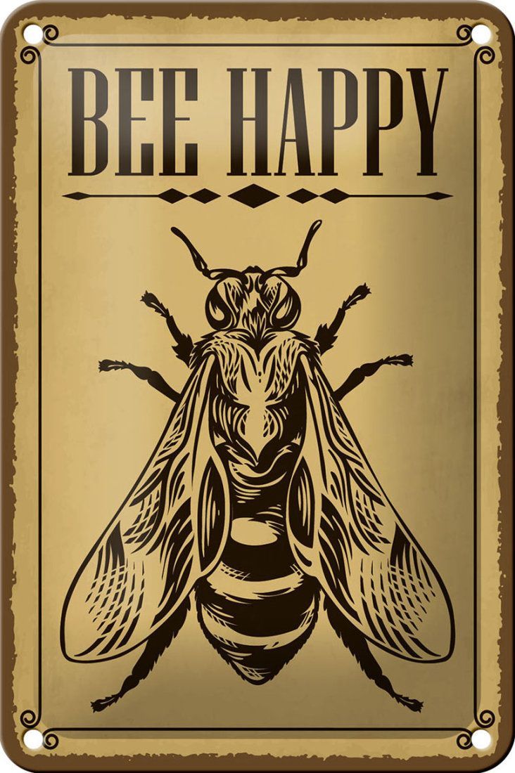 Blechschild "Bee Happy" - 12x18 cm gelb gewölbt Biene Imkerei