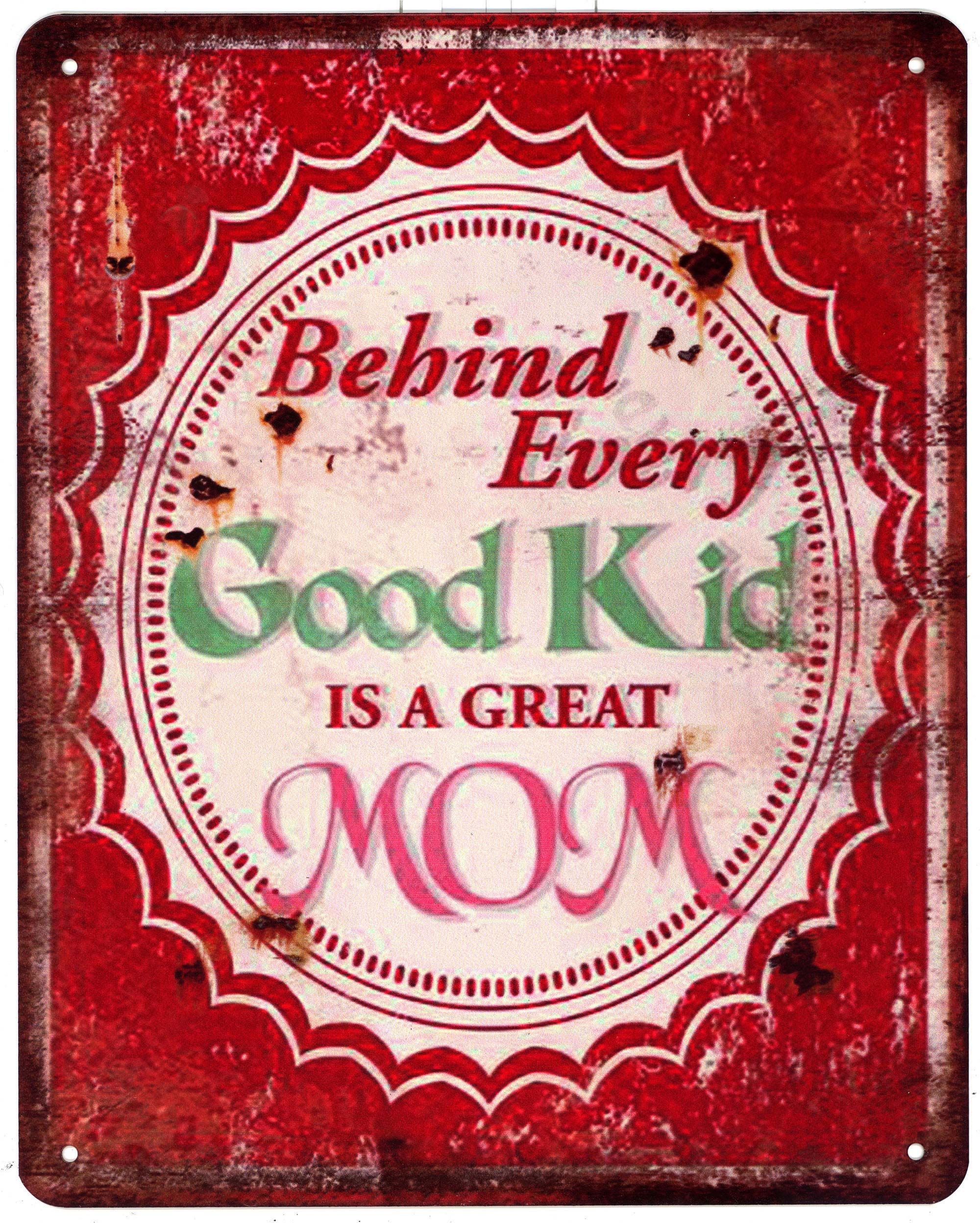 Blechschild Behind Every Good Kid Great Mom Deko Schild Aufschrift Druck 20 x 25