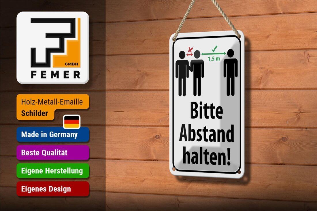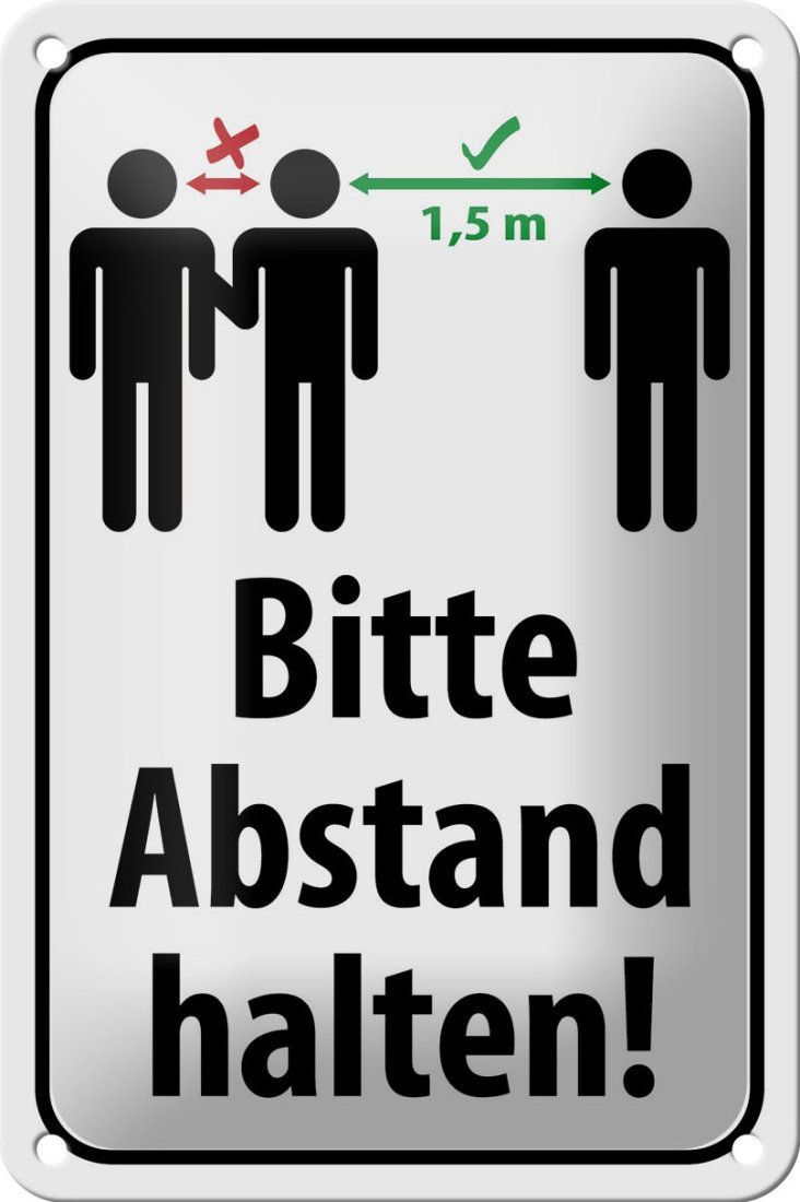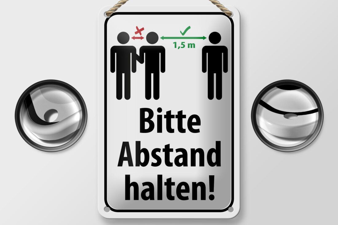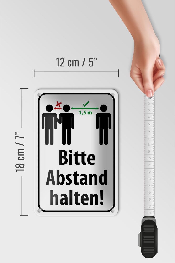Blechschild "Bitte Abstand halten 1.5 m" - 12x18 cm weiß schwarz gewölbt