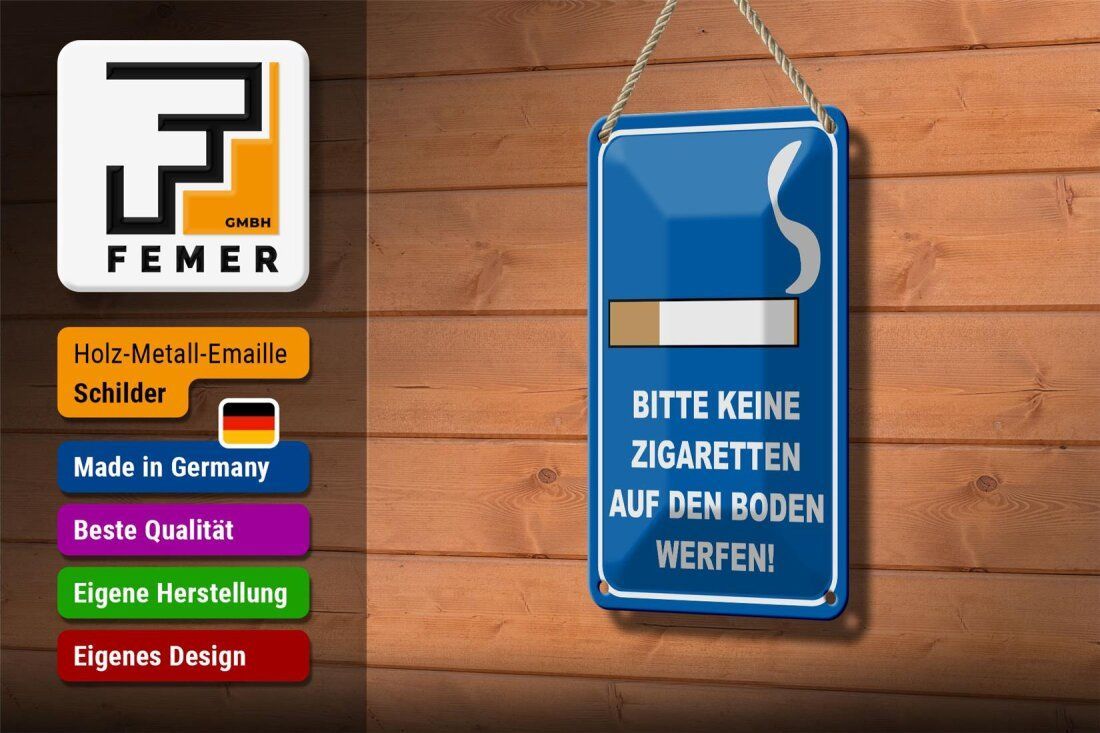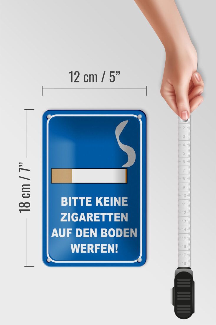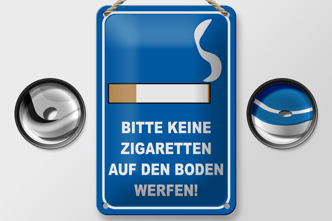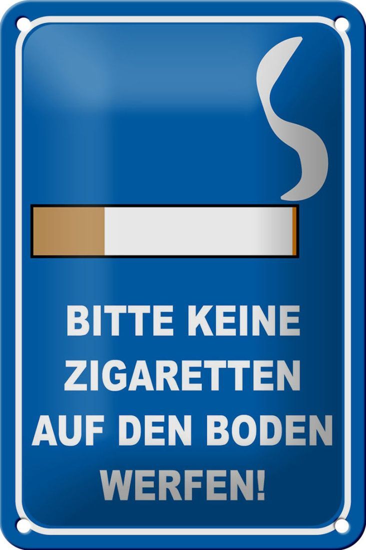 Blechschild "Bitte keine Zigaretten auf den Boden werfen" 12x18 cm blau weiß gewölbt