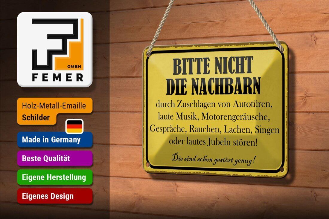 Blechschild Bitte nicht die Nachbarn stören - Die sind schon gestört genug! 18x12cm