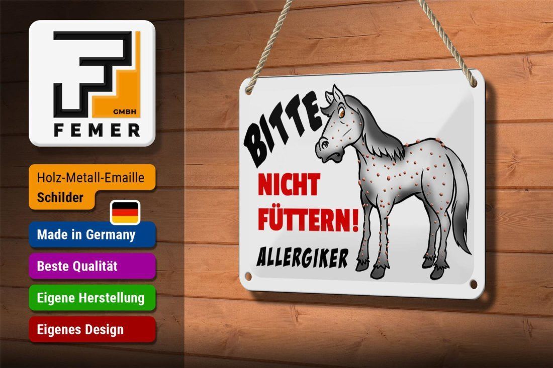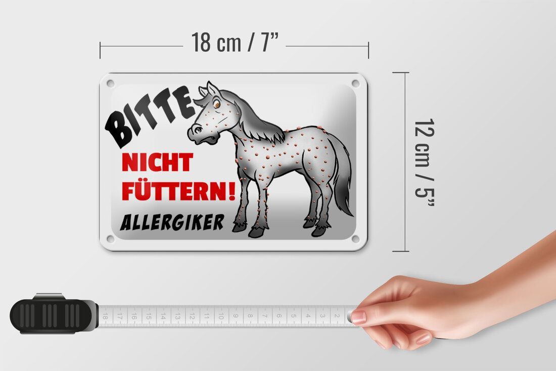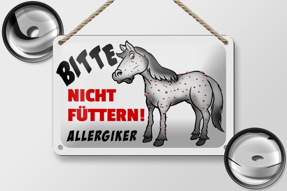 Blechschild "Bitte nicht füttern! Allergiker" Pferd 12x18 cm weiß schwarz rot gewölbt