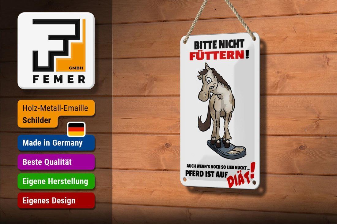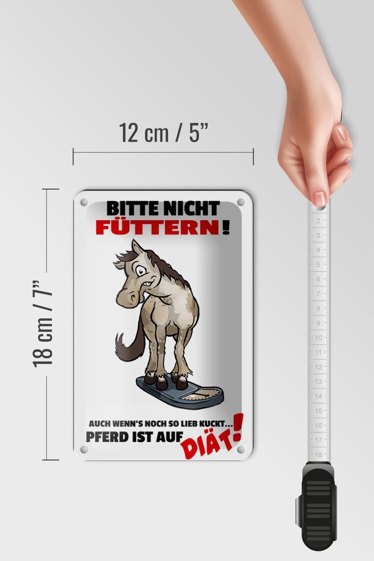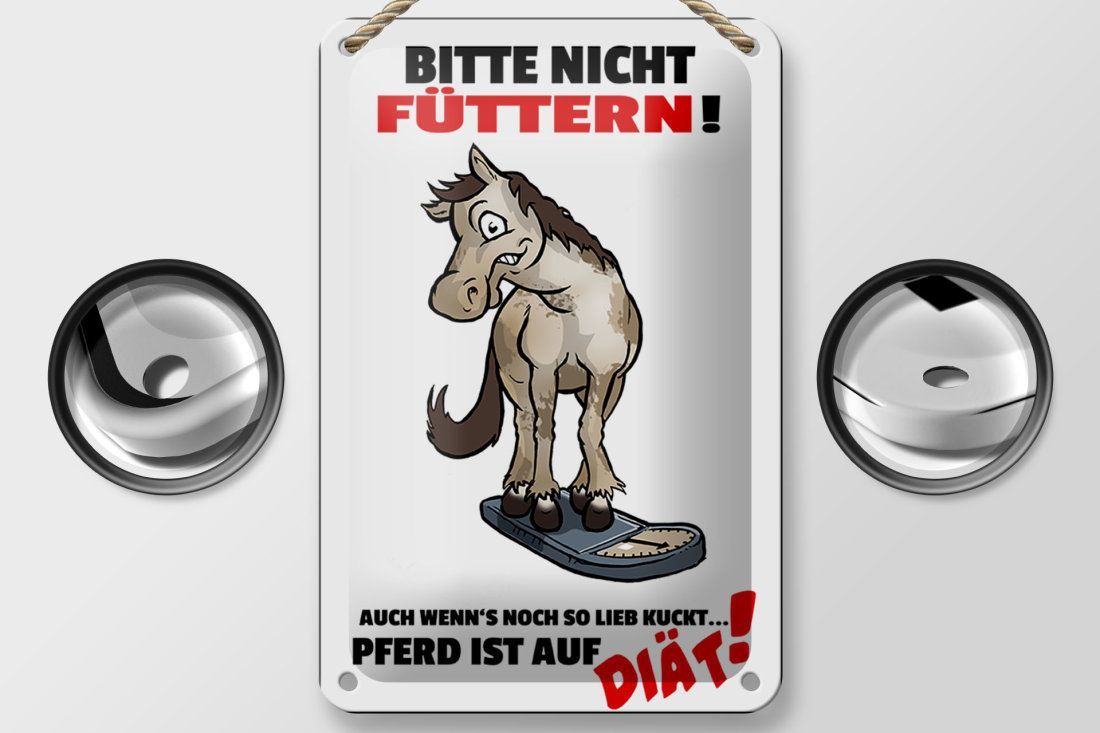 Blechschild "Bitte nicht füttern Pferd ist auf Diät" 12x18 cm weiß gewölbt