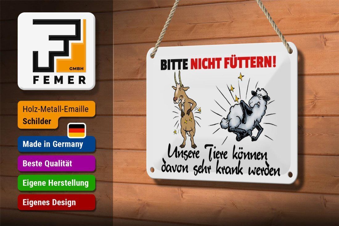 Blechschild "Bitte nicht füttern! Tiere können krank werden" 12x18 cm Schaf gewölbt