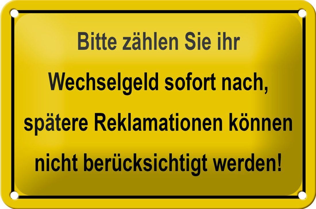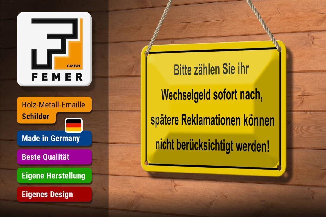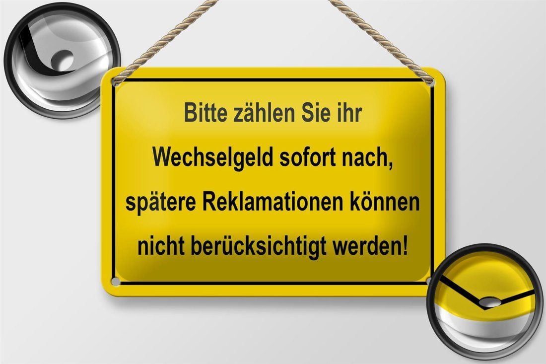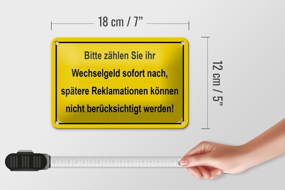 Blechschild „Bitte zählen Sie Ihr Wechselgeld sofort nach …“ 18x12cm gelb gewölbt II