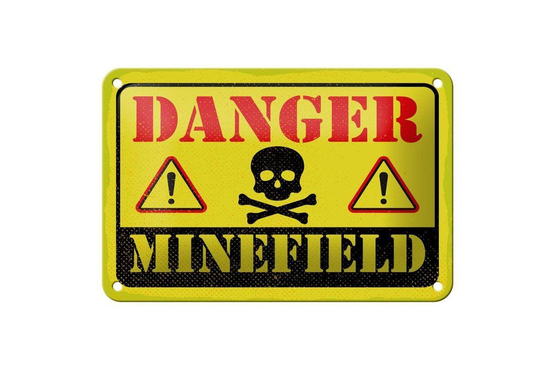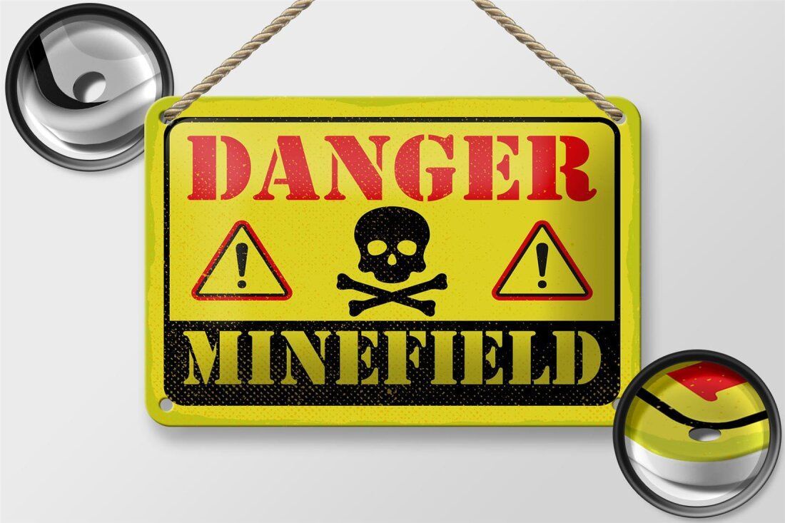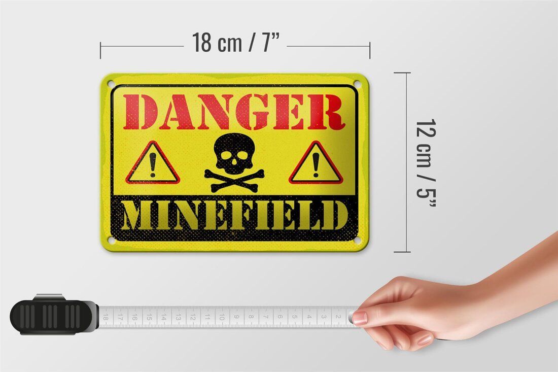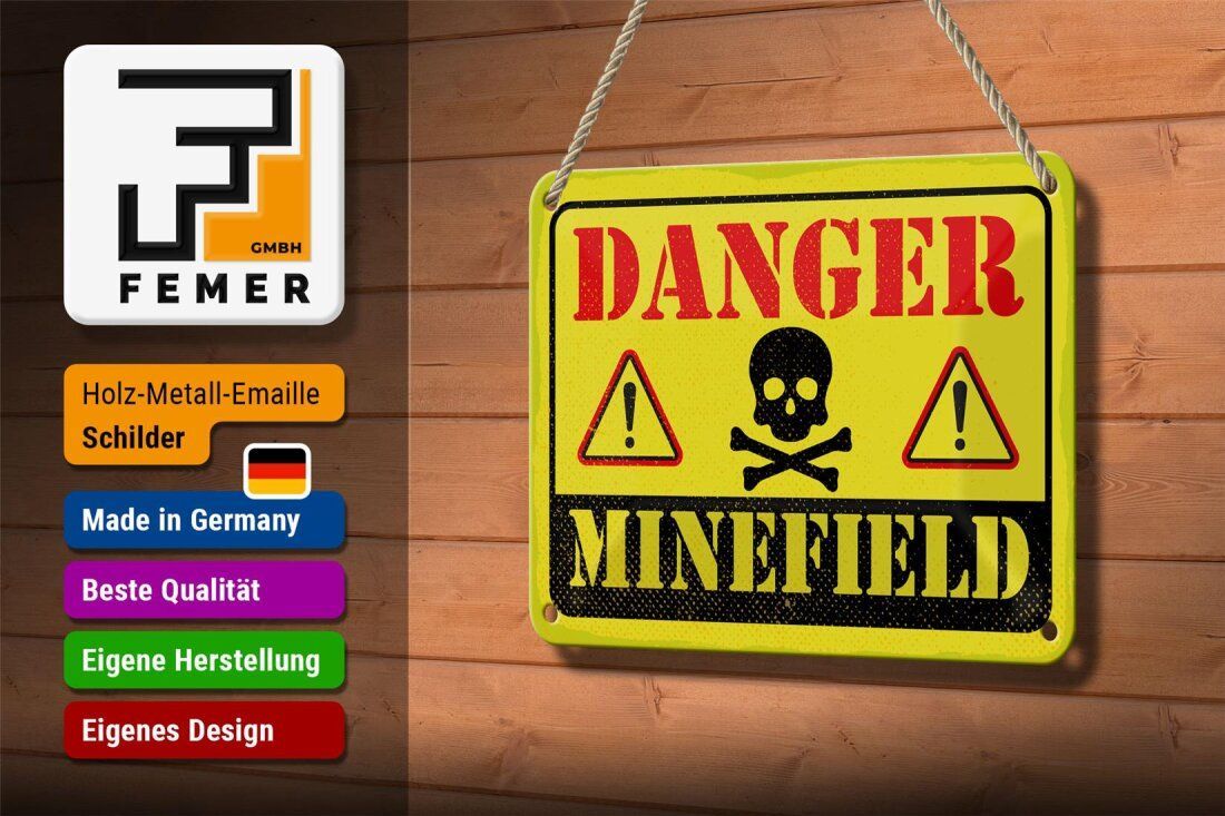 Blechschild "Danger Minefield" 18x12cm gelb gewölbt