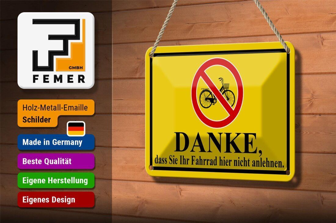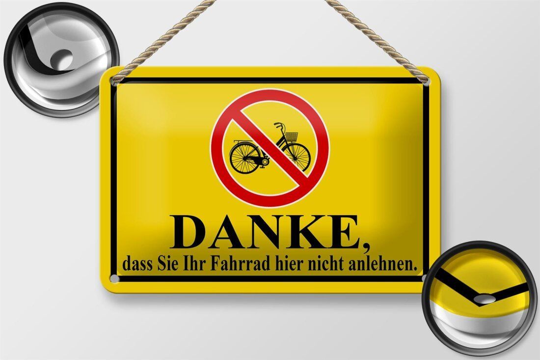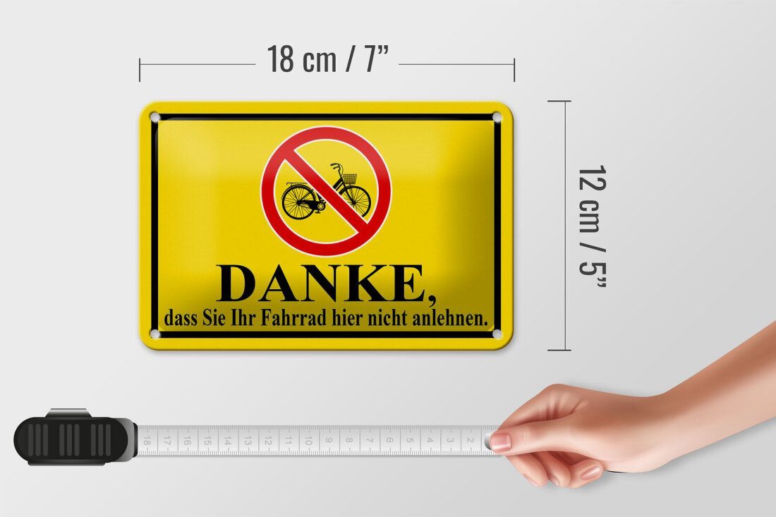Blechschild „DANKE, dass Sie Ihr Fahrrad hier nicht anlehnen" 18x12cm gelb gewölbt
