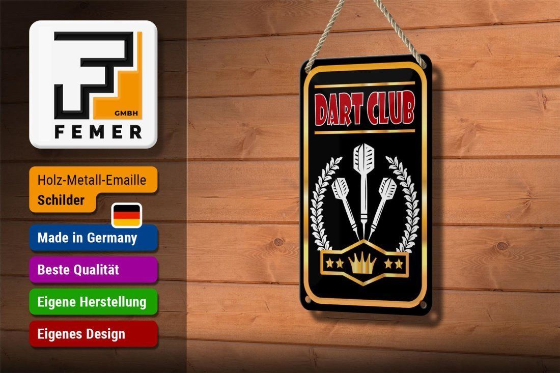 Blechschild "Dart Club" 12x18 cm schwarz gewölbt
