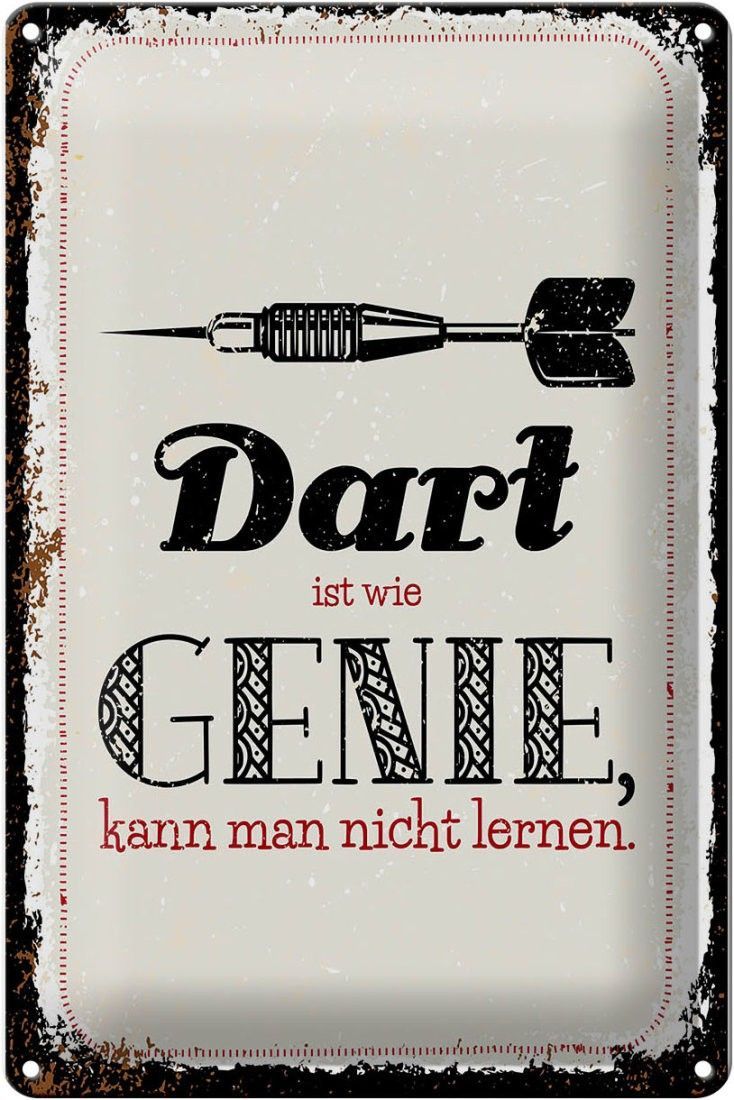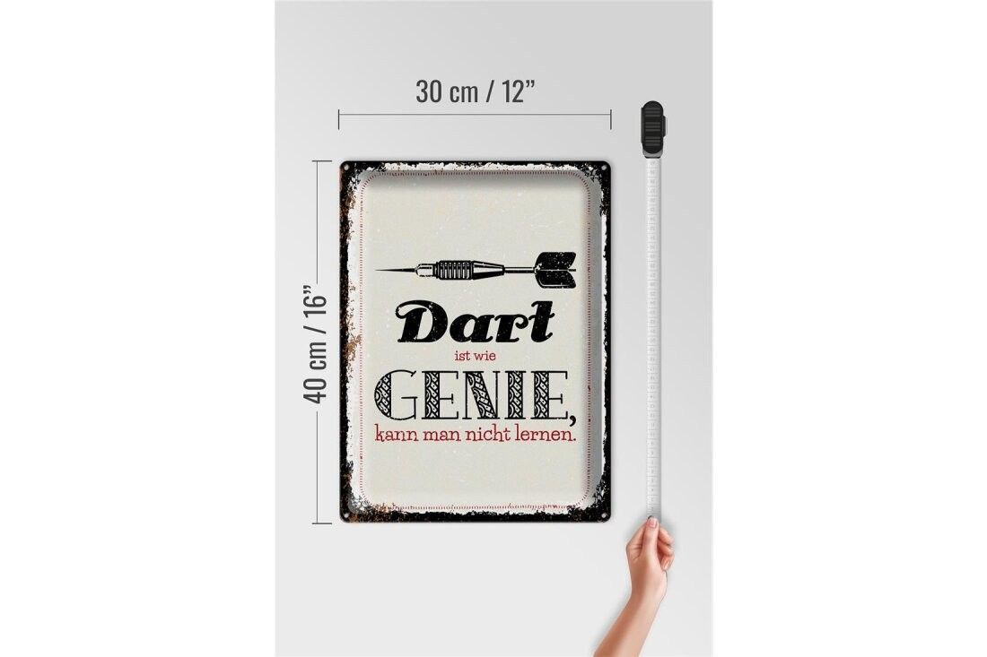 Blechschild Dart Genie kann man nicht lernen, 4 verschied Größen, Spruch Hobby Sport