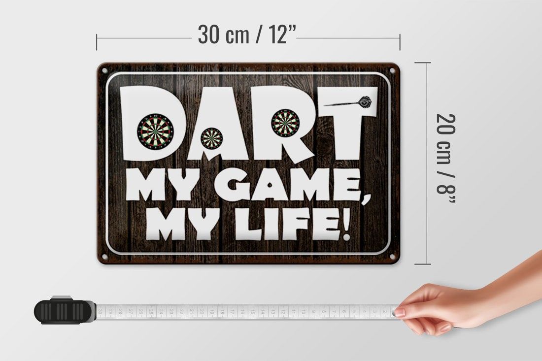 Blechschild Dart my Game my Life, 3 vers Größen, Spruch Hobby