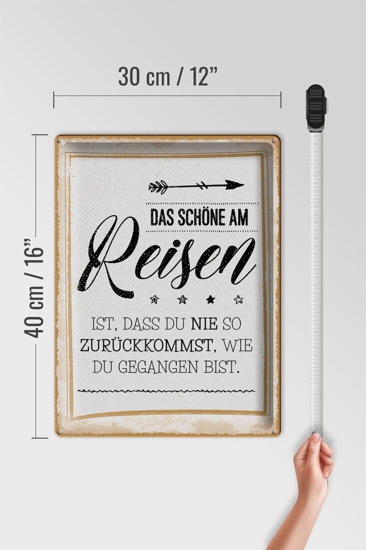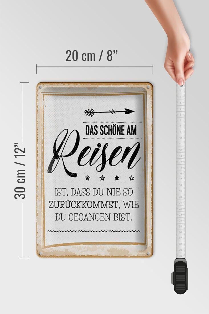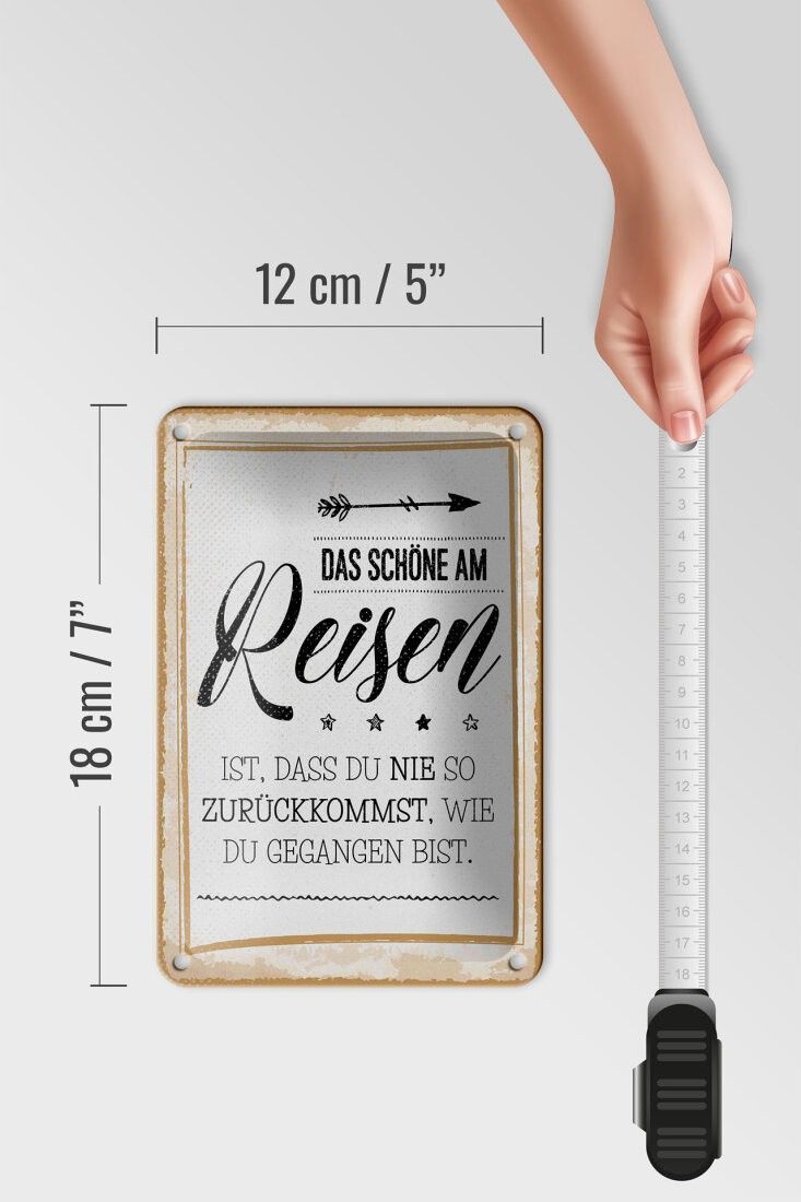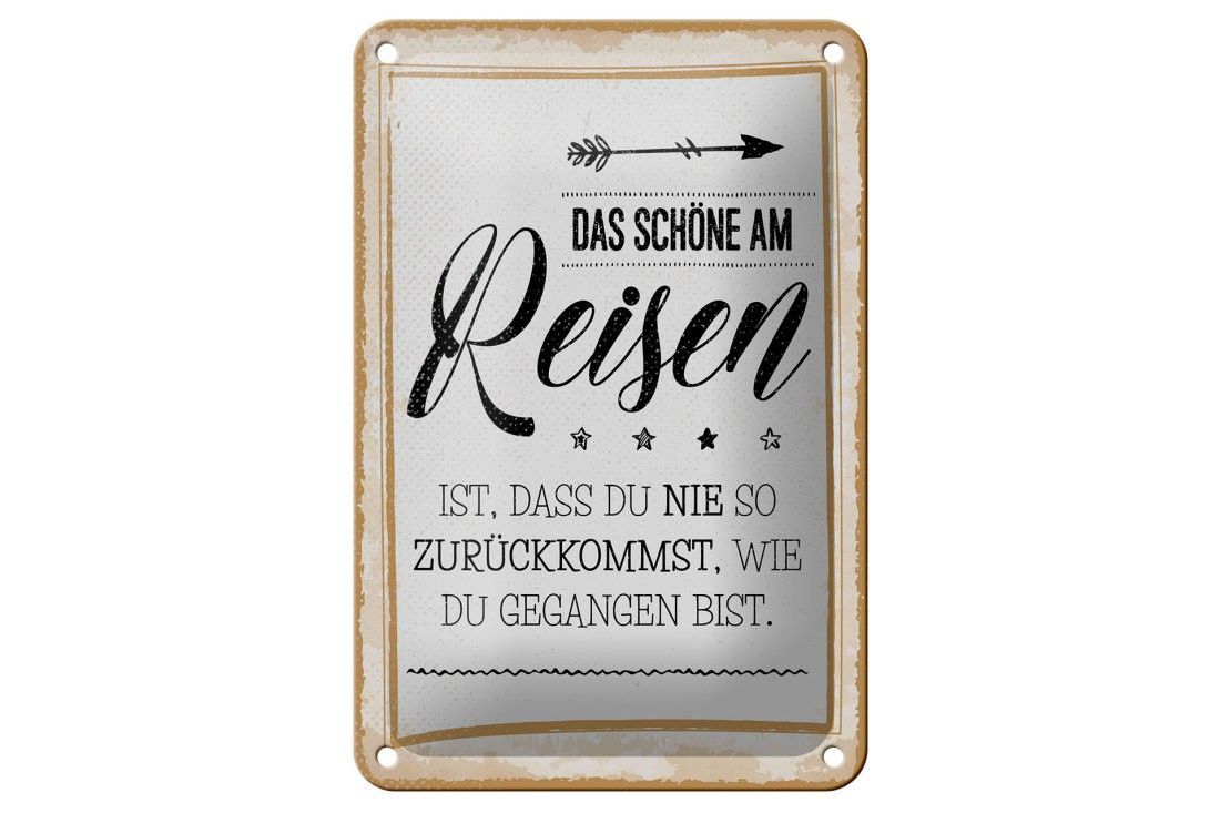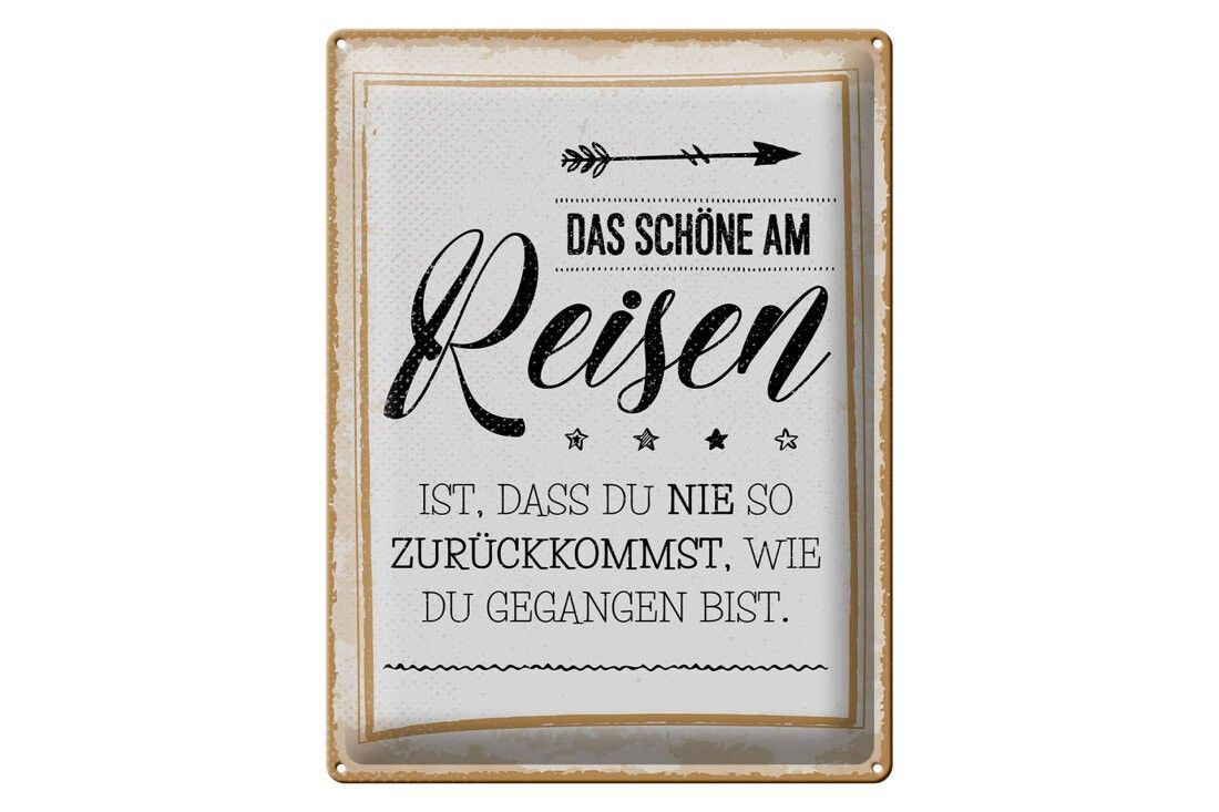 Blechschild Das schöne am Reisen ist, 3 vers. Größen, Spruch