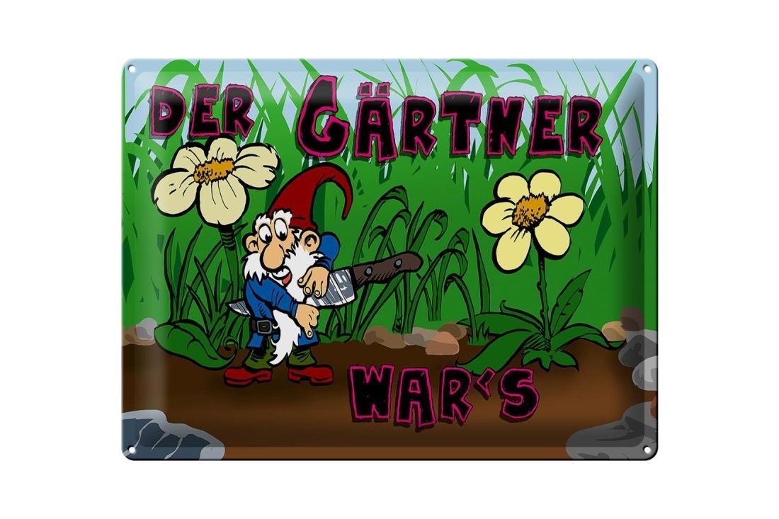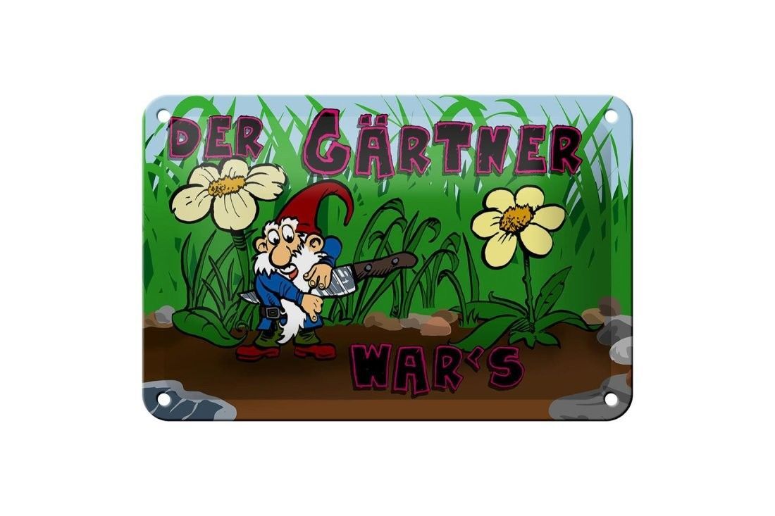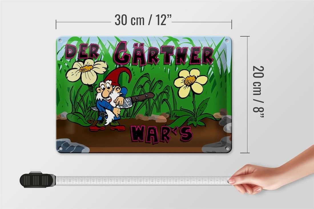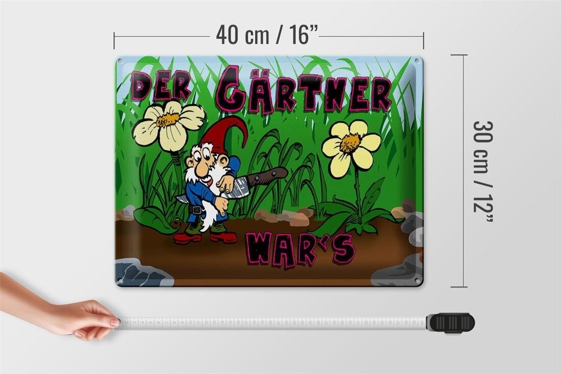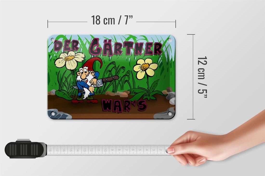 Blechschild der Gärtner war´s, 3 verschied Größen, Spruch, Zwerg
