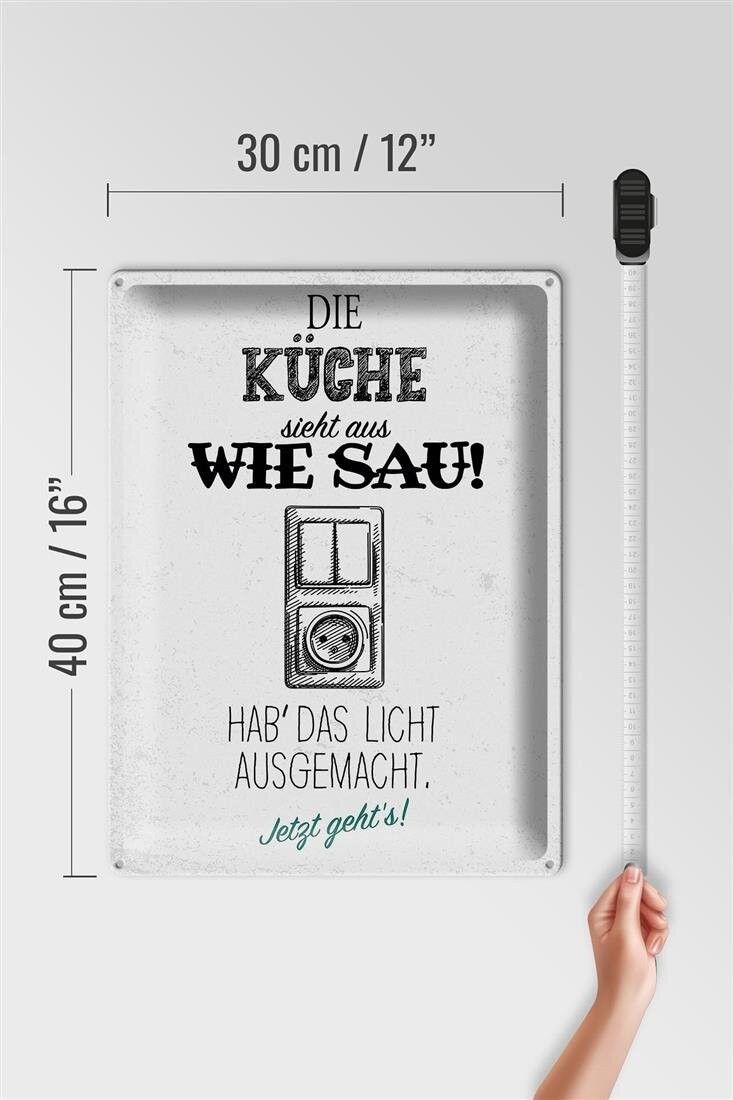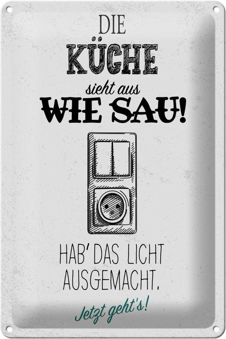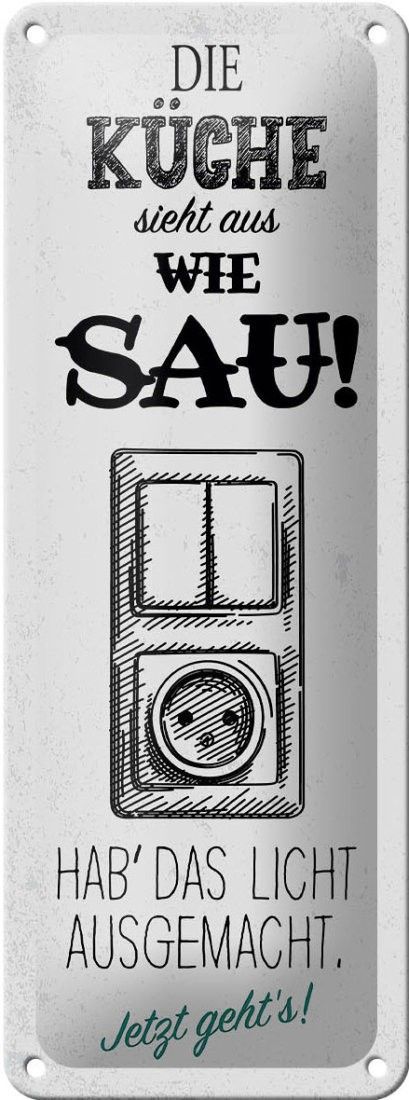 Blechschild Die Küche sieht aus wie Sau Lichtschalter, 4 verschied Größen Schilder