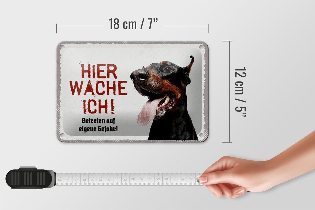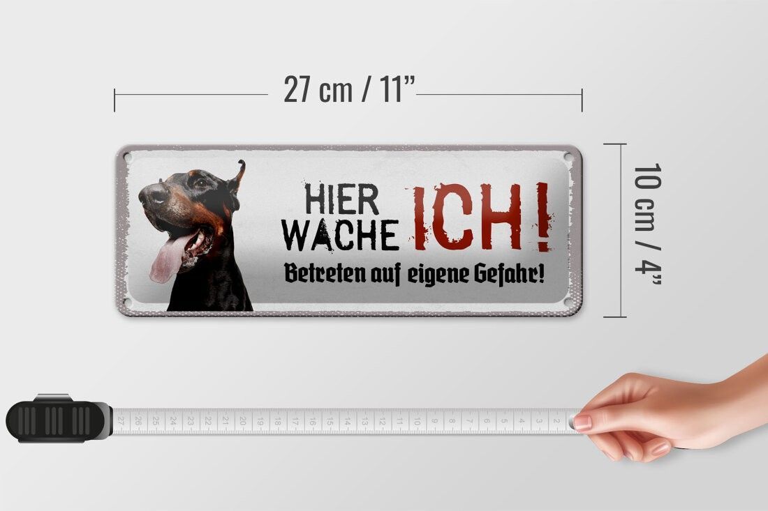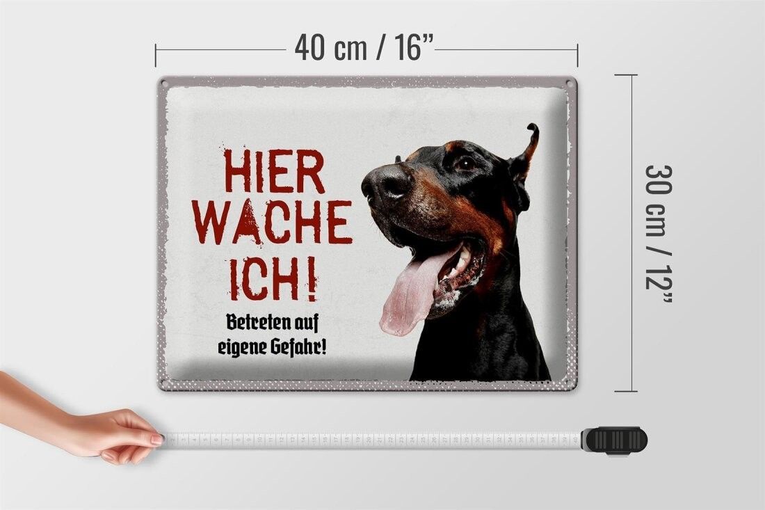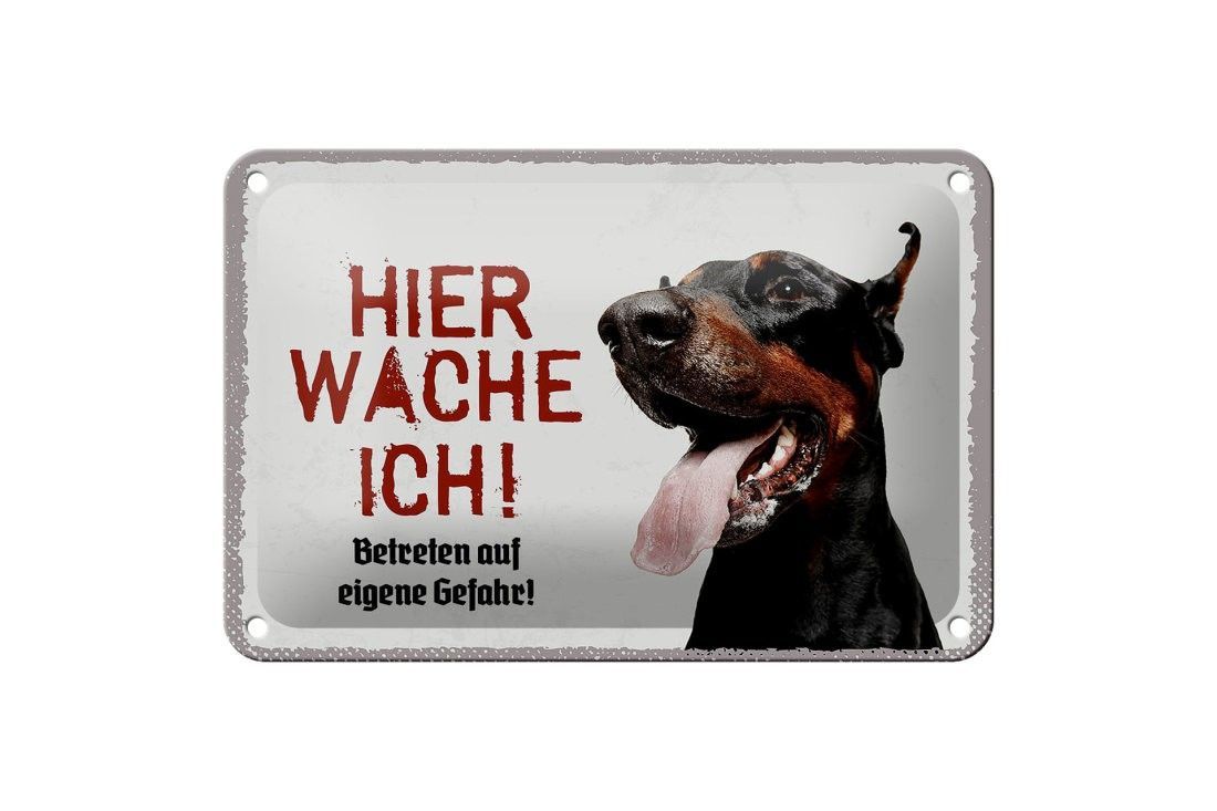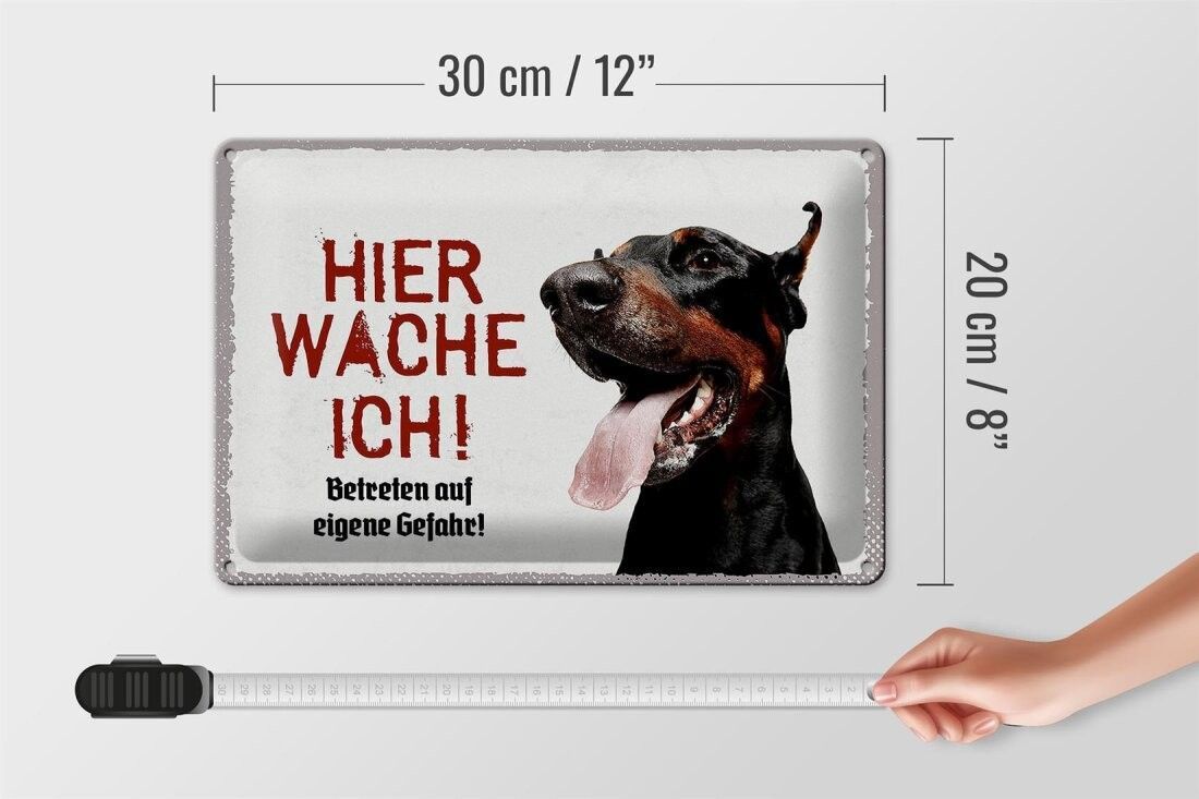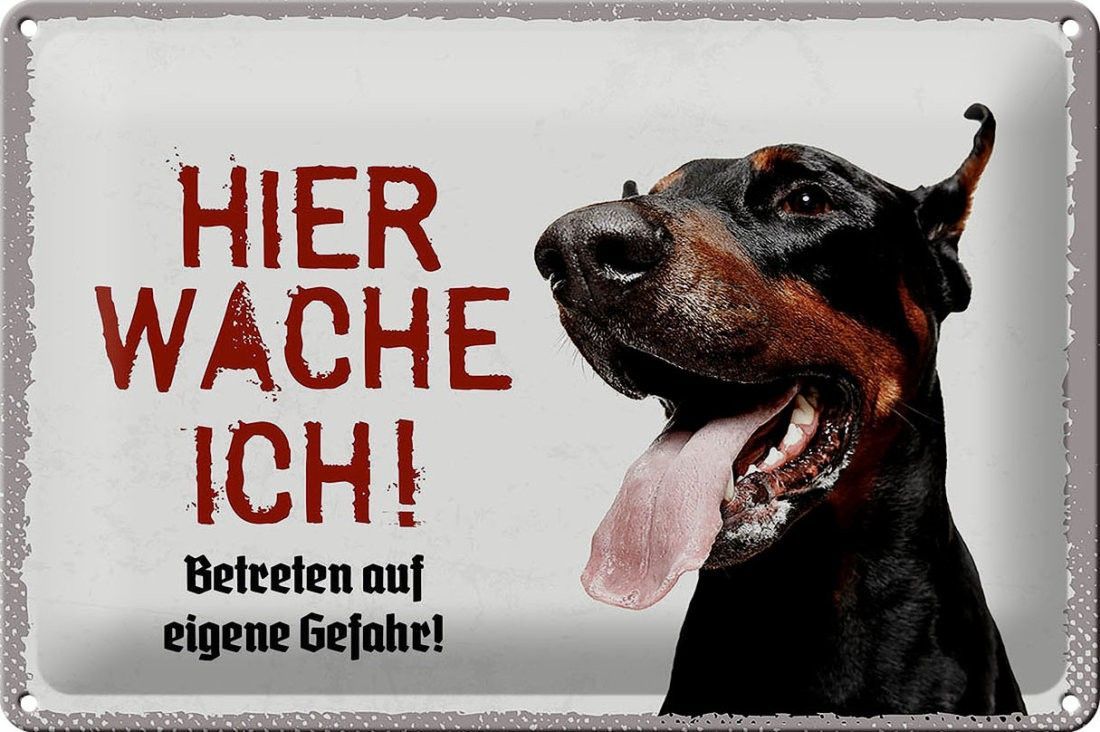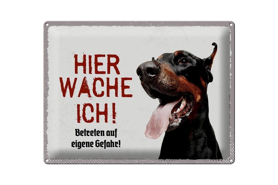 Blechschild Dobermann hier wache ich, 4 verschied Größen, Blechschilder Spruch Hund