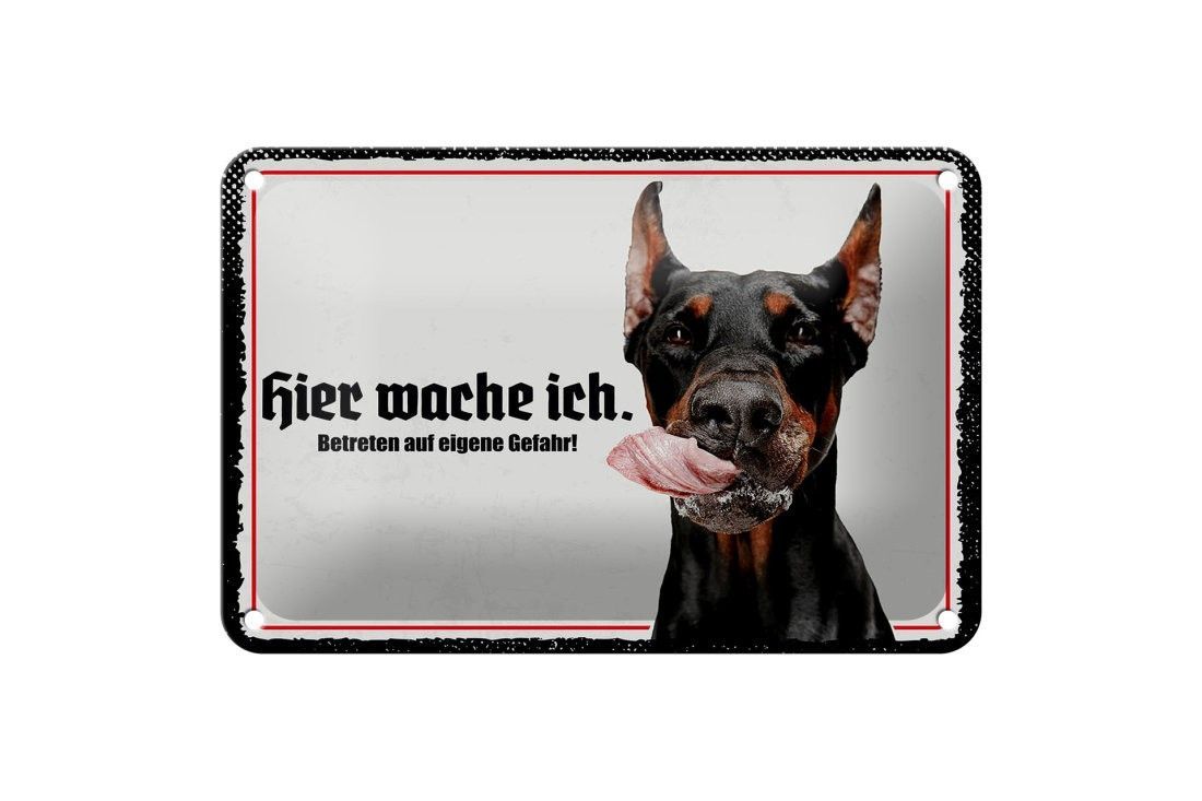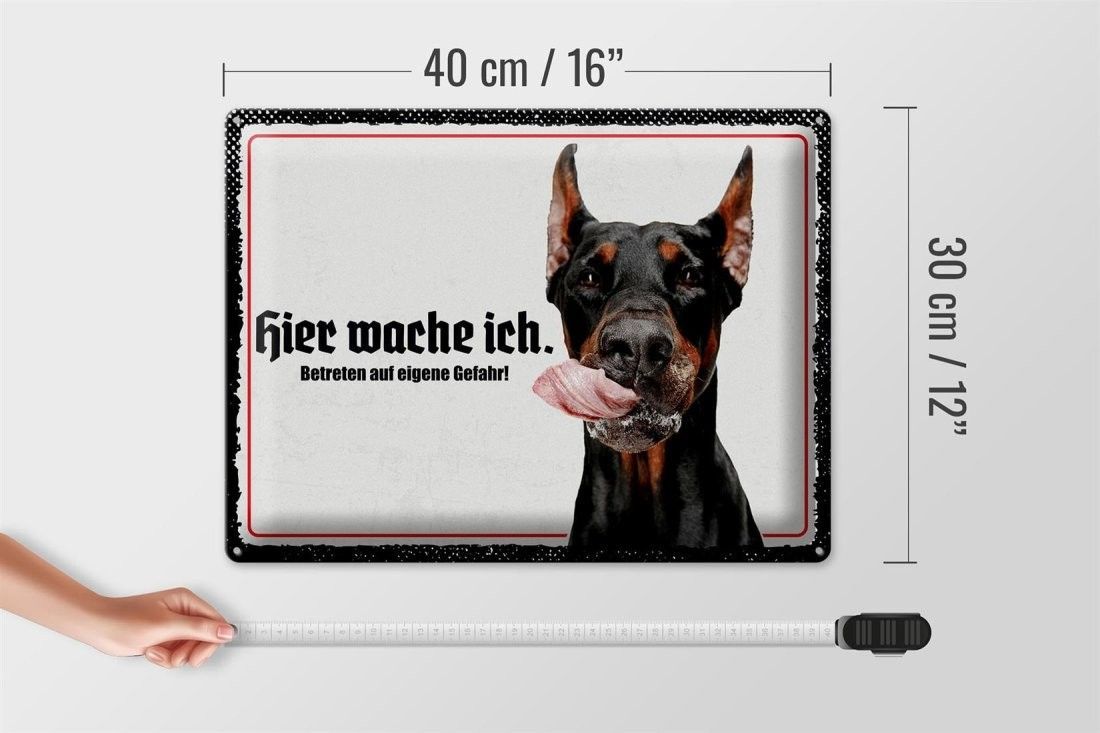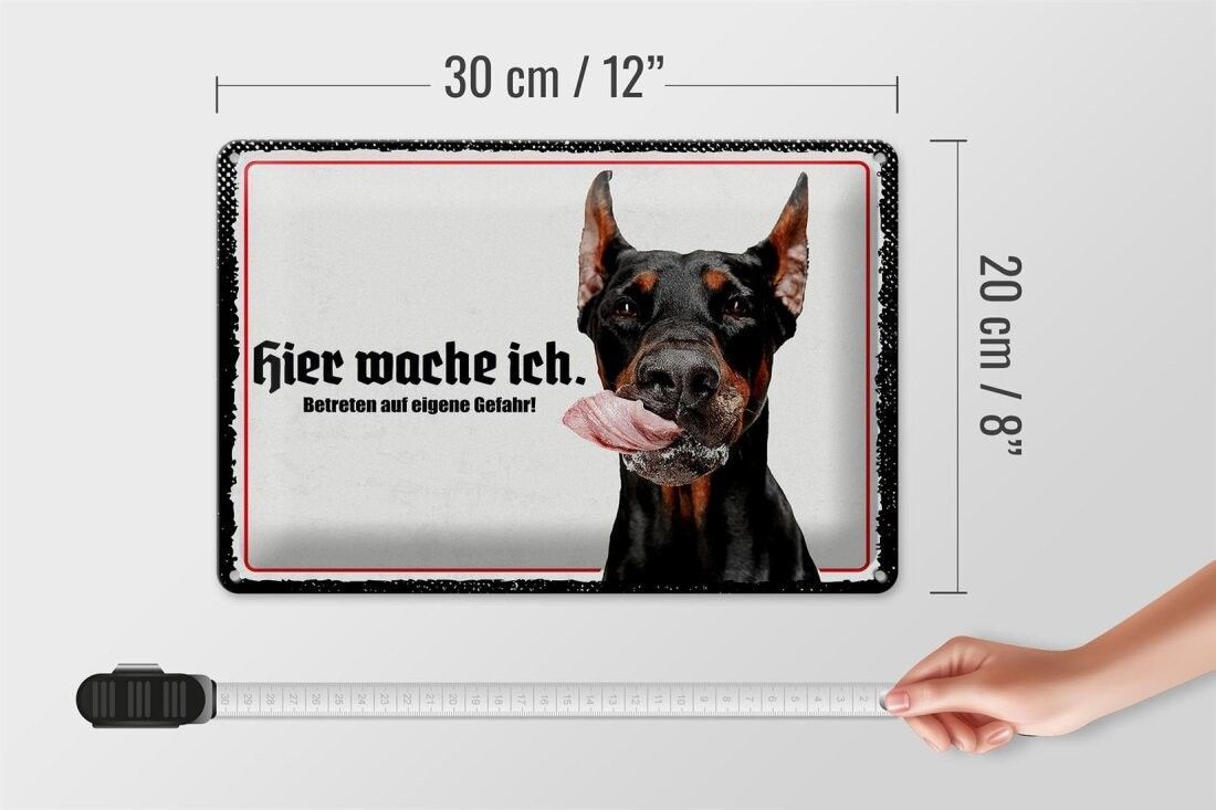 Blechschild Dobermann hier wache ich, 4 verschied Größen, Blechschilder Spruch Hund