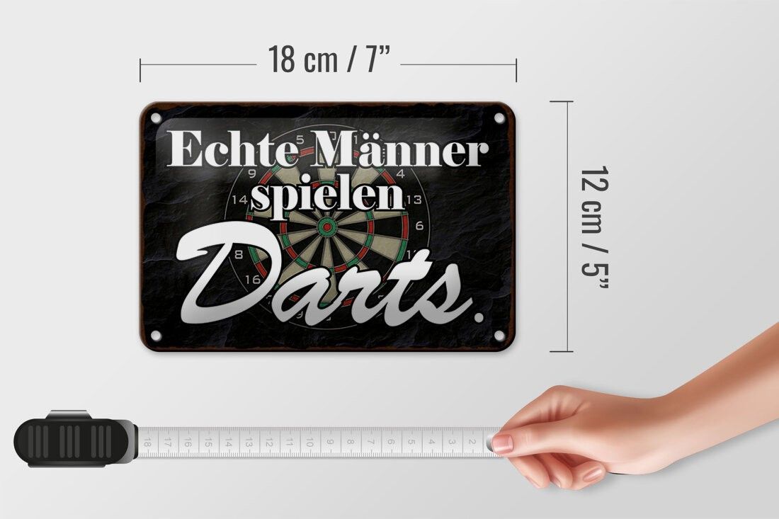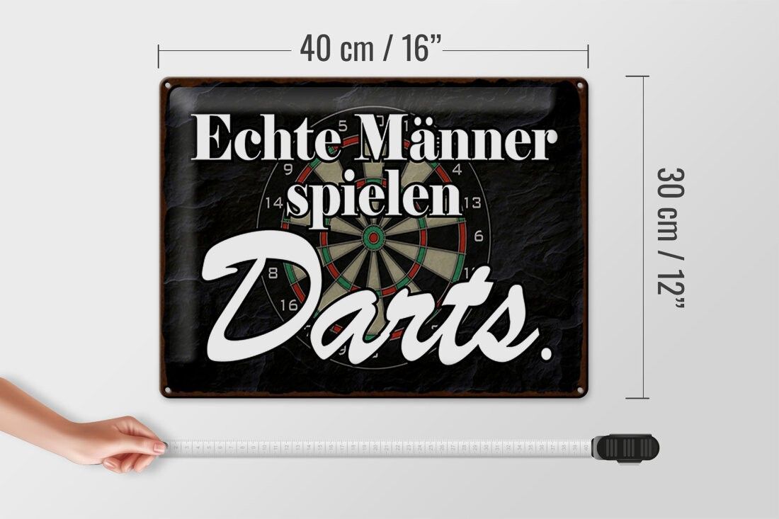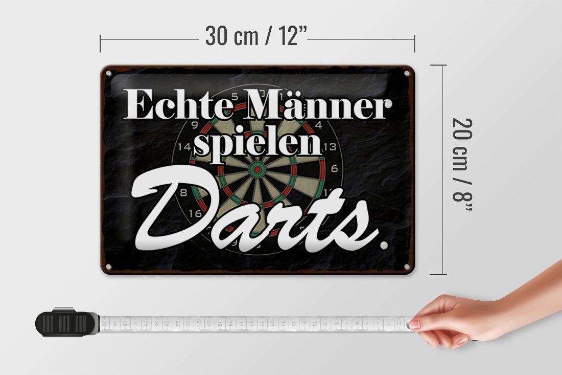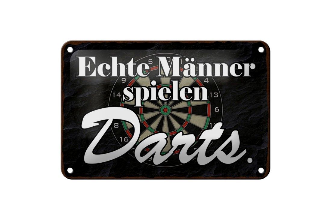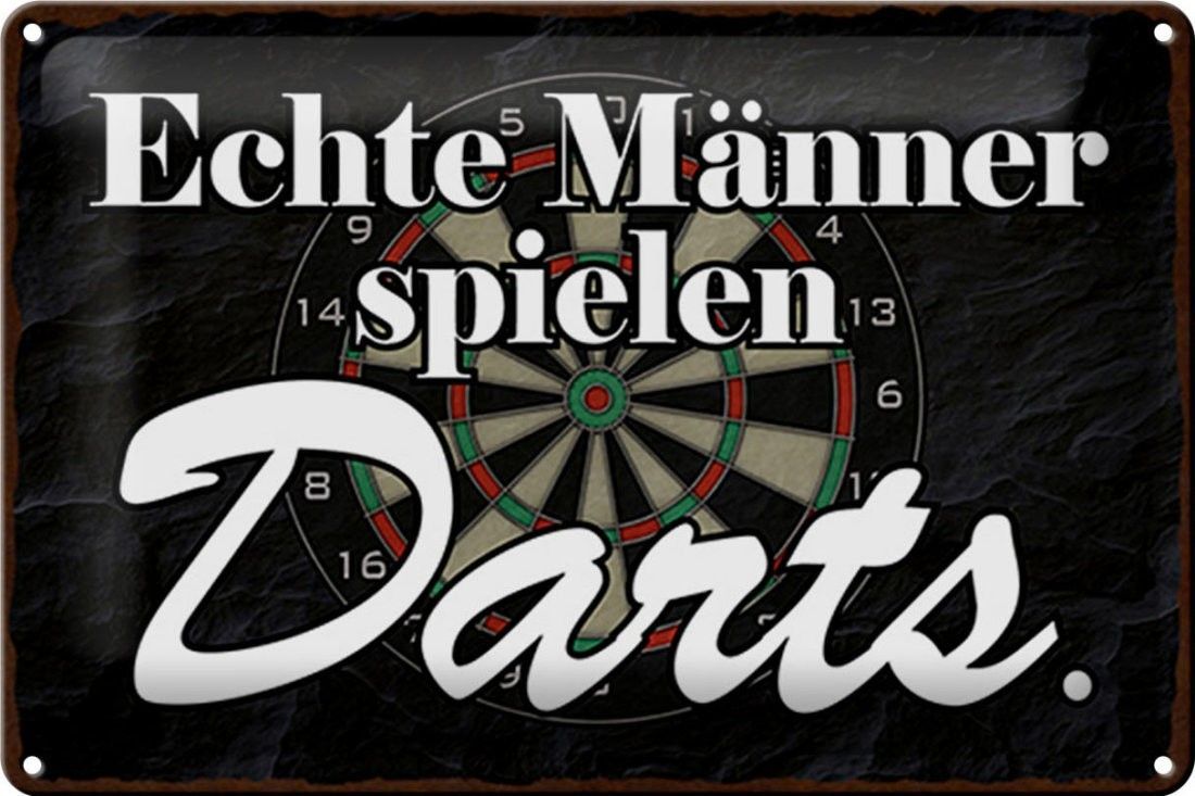 Blechschild echte Männer spielen Darts, 3 vers Größen, Spruch Hobby